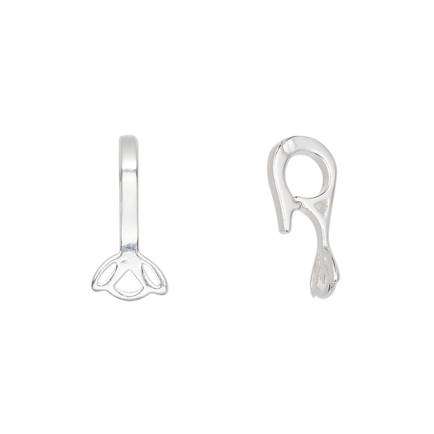 Bail, sterling silver, 16x7mm with snap lock and cutout flower design. Sold individually.