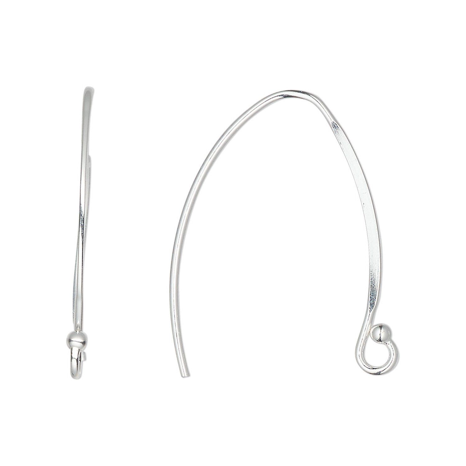 Ear wire 1pkg2 sterling silver, 28mm flat marquise / open loop, 19 gauge 1 pair