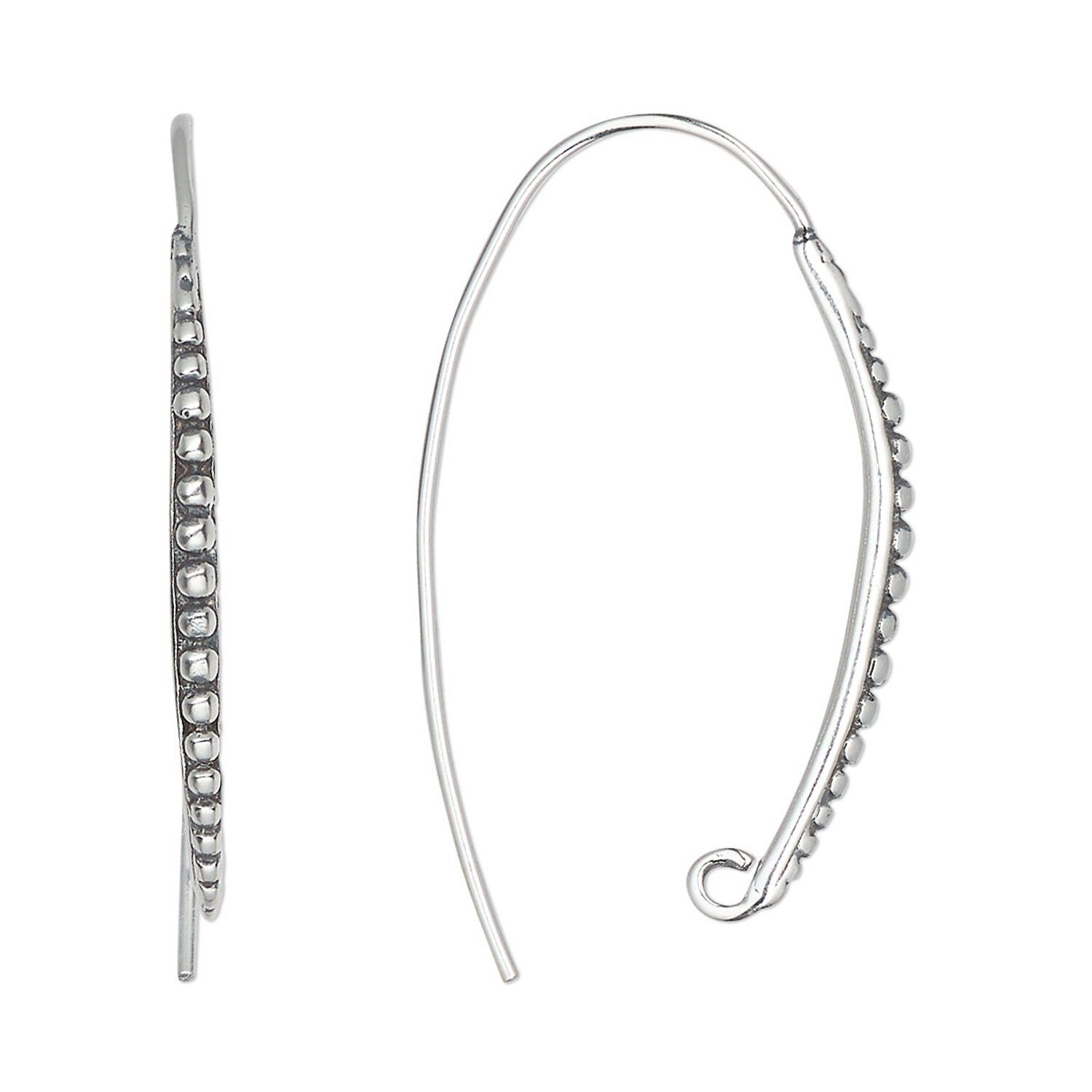 Ear wire 1pkg2 sterling silver, 33mm beaded / open loop, 20 gauge antiqued 1 pair