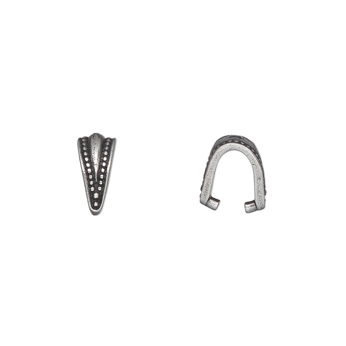 Bail, TierraCast®, ice-pick, pewter (tin-based alloy), 10x5mm with beaded border, 7mm grip length. Sold per pkg of 2.