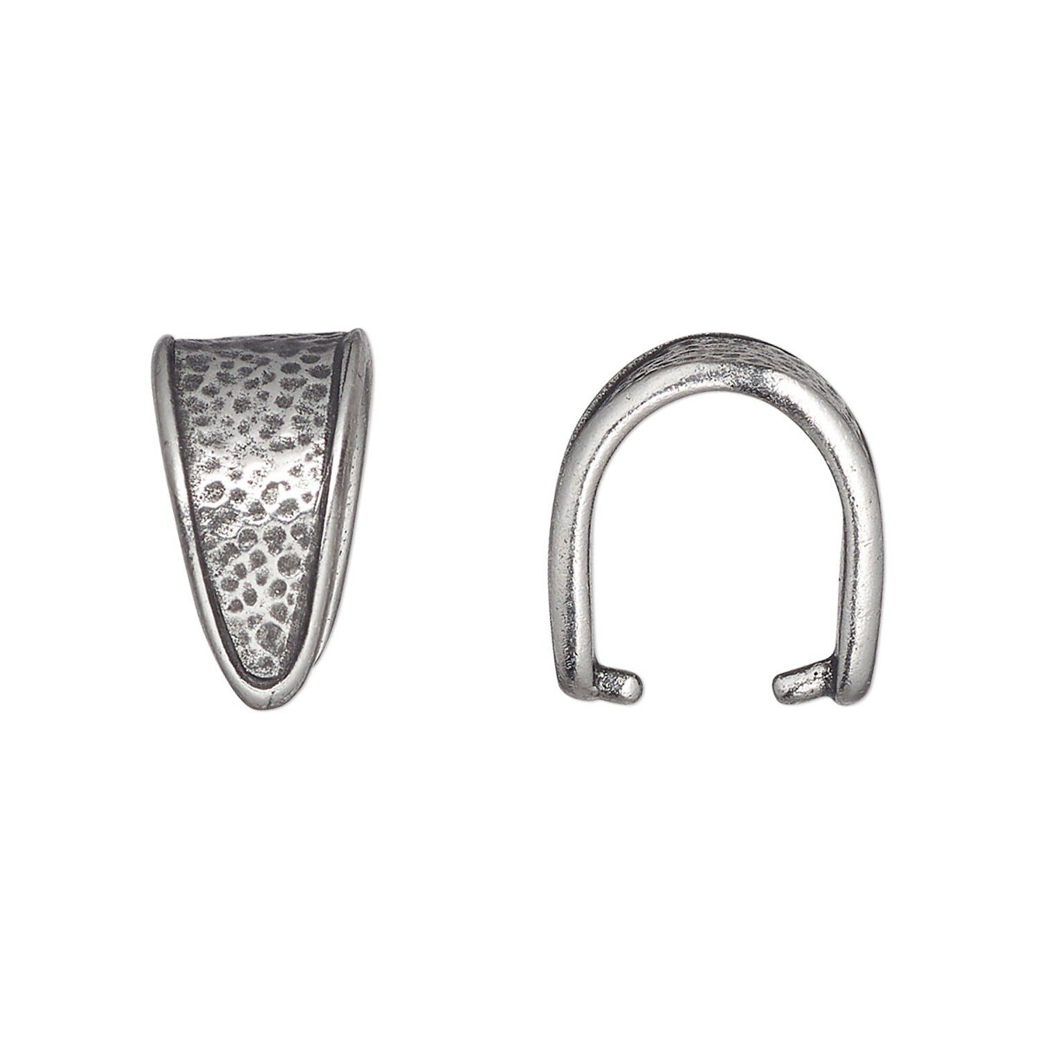 The Hammertone Collection from TierraCast® features a delicately hammered finish for incredible texture to accentuate both modern and vintage designs. Quality TierraCast products are made in Greece and a customer favorite. Transform a focal or drop component into a pendant with a beaded border ice-pick bail also known as a "pinch bail." Easy to use, align the pegs with the holes of the focal and pinch the pegs together.