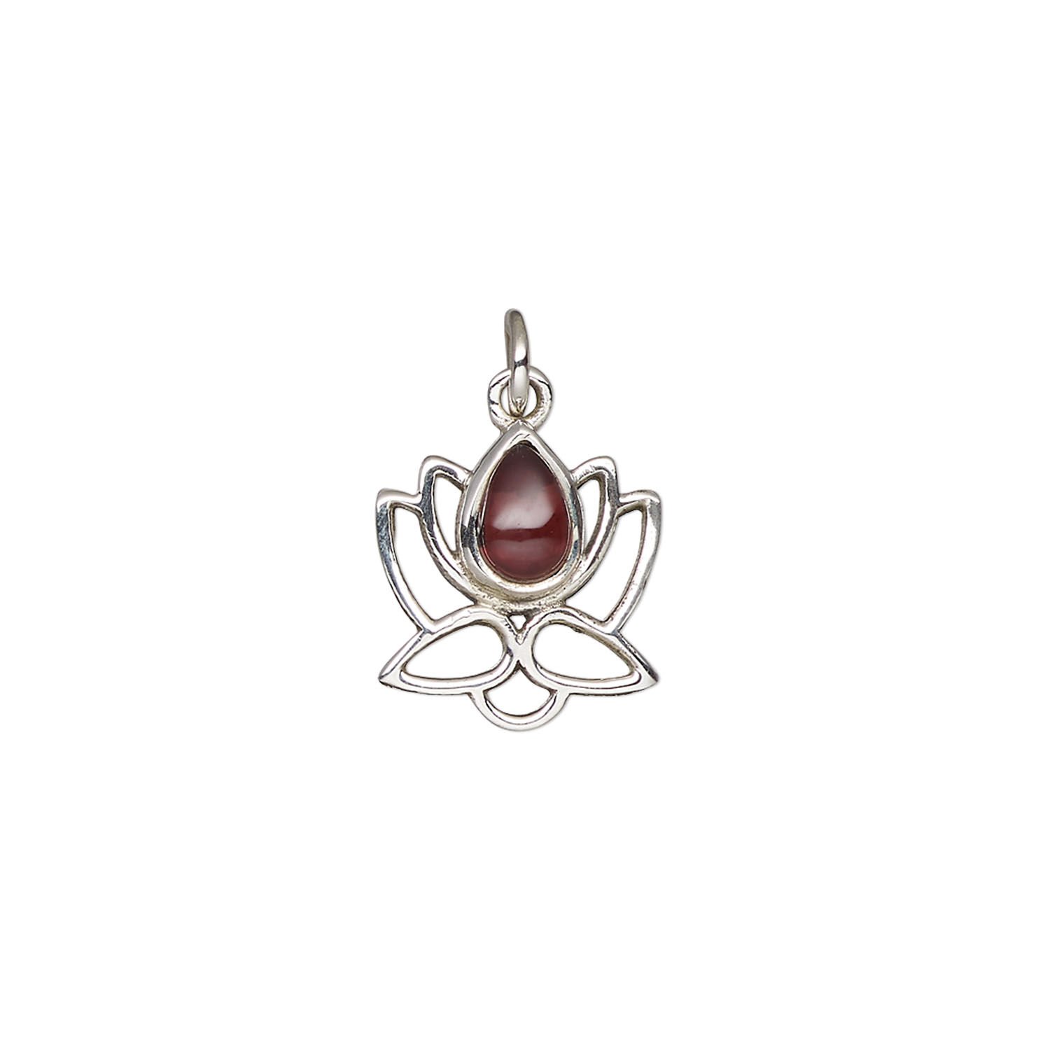 Garnet / sterling silver 1pkg1, antiqued open lotus drop natural 12x12mm