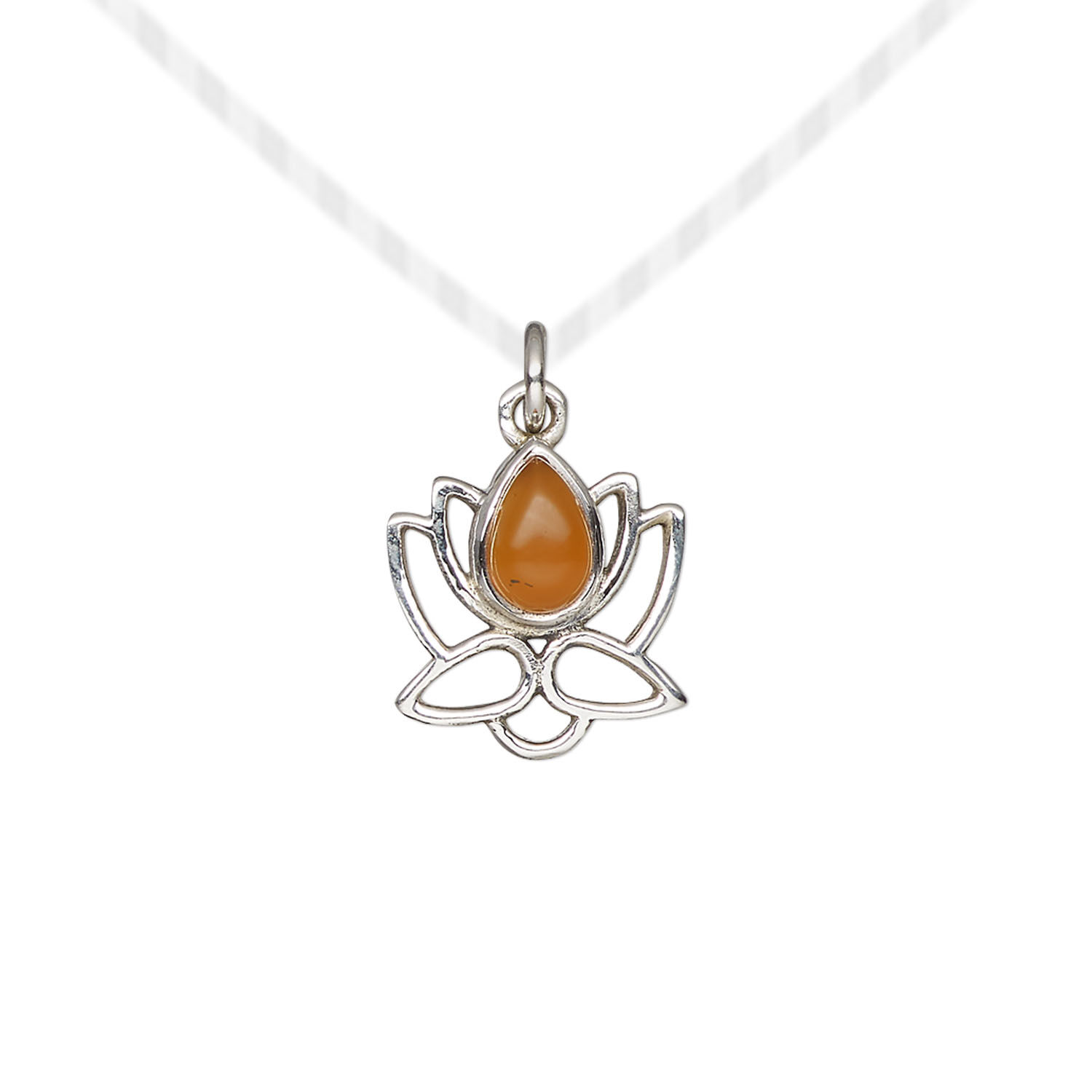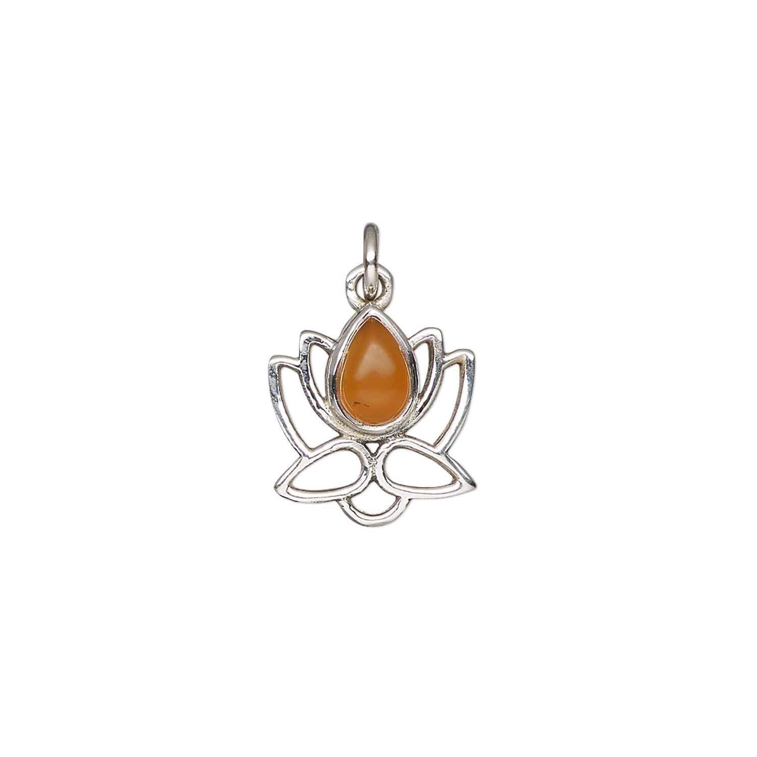 Carnelian / sterling silver 1pkg1, open lotus drop antiqued 12x12mm
