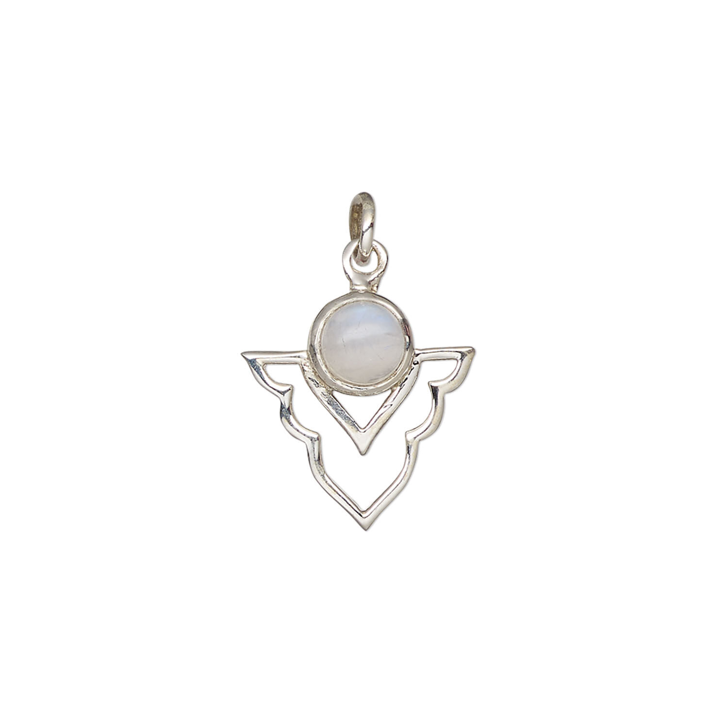 Antique sterling silver drops featuring set rainbow moonstone gemstones are meticulously crafted treasures. These jeweled components are ideal for earring drops, personalized birthstone designs, minimalist jewelry trends and other sellable creations. Pair them with the matching earrings for a charming jewelry set.