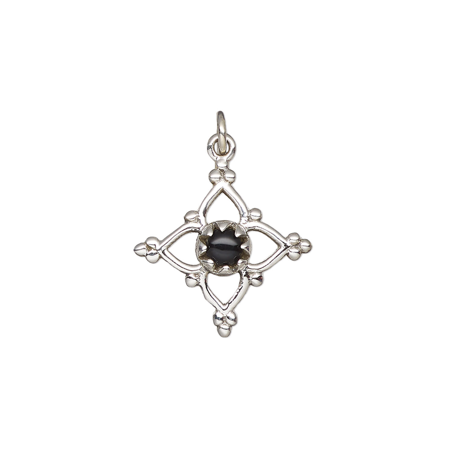 Black onyx / sterling silver 1pkg1, antiqued open beaded diamond drop 17x17mm