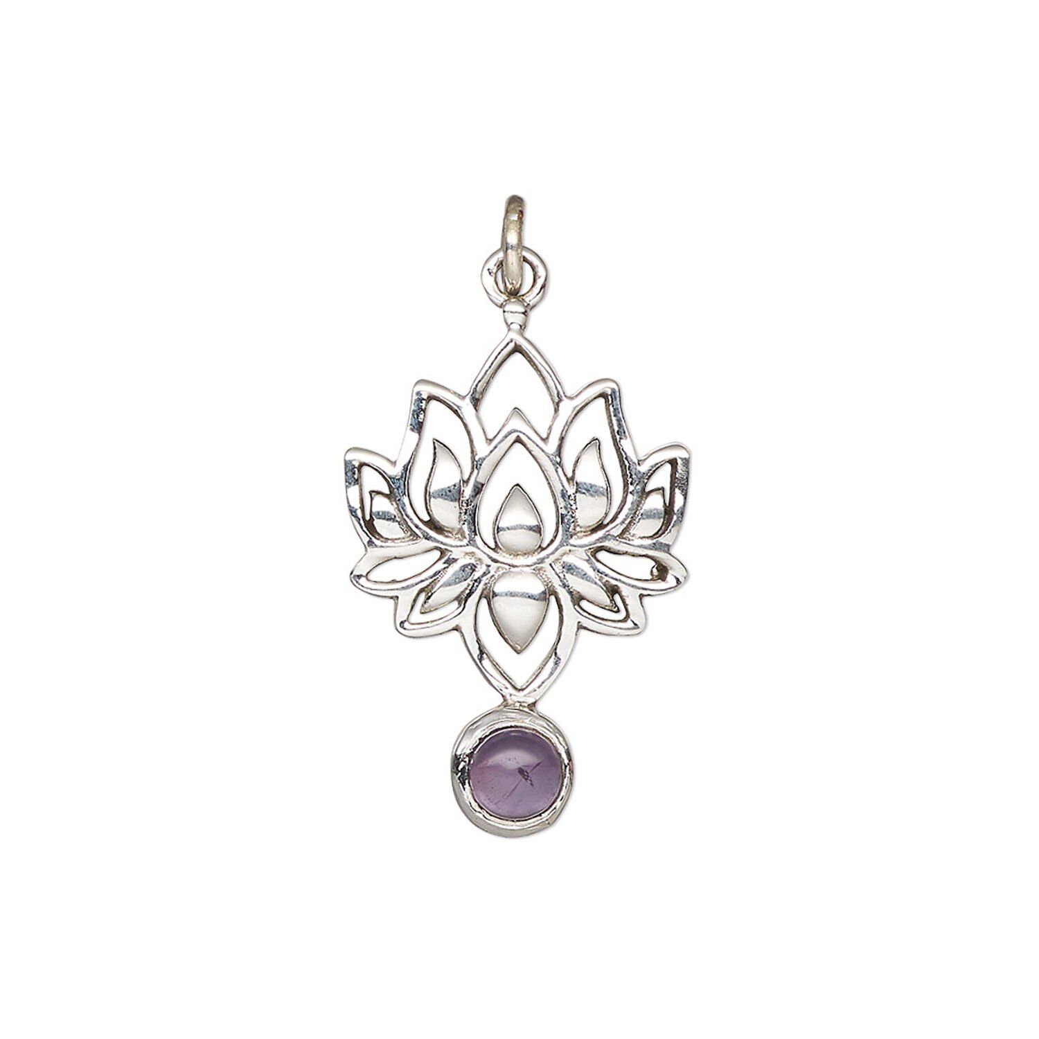 Amethyst / sterling silver 1pkg1, lotus drop natural antiqued 22.5x14.5mm
