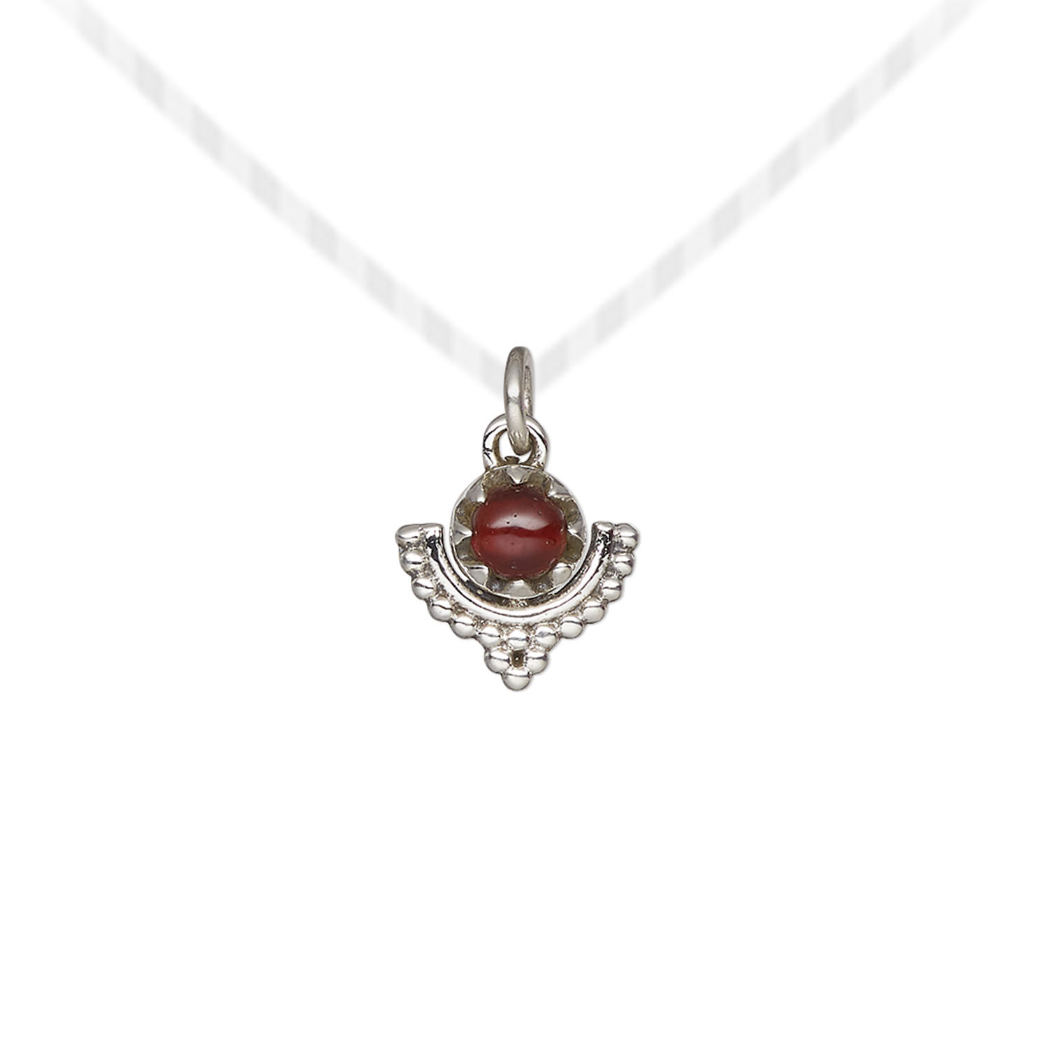Garnet / sterling silver 1pkg1, antiqued beaded drop natural 10x10mm