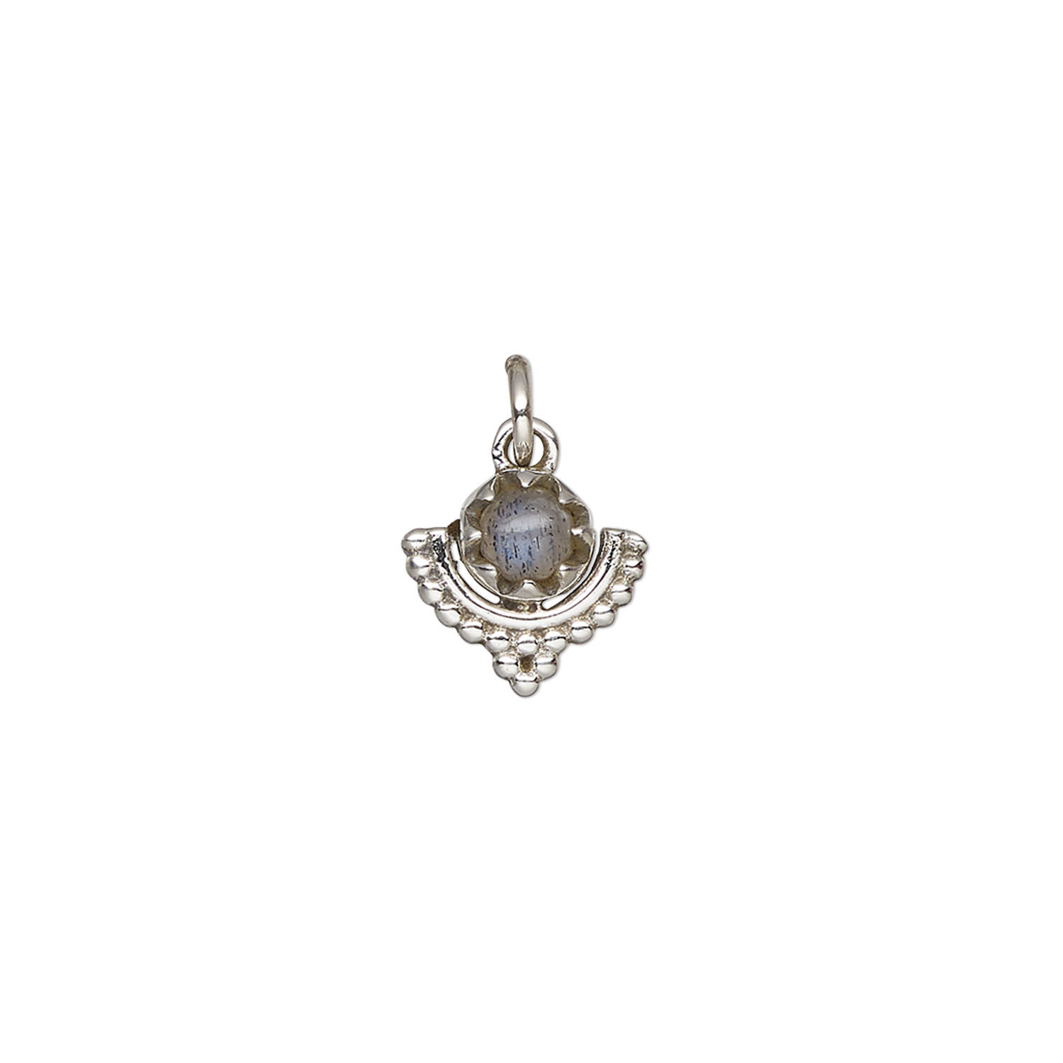 Labradorite / sterling silver 1pkg1, beaded drop natural antiqued 10x10mm