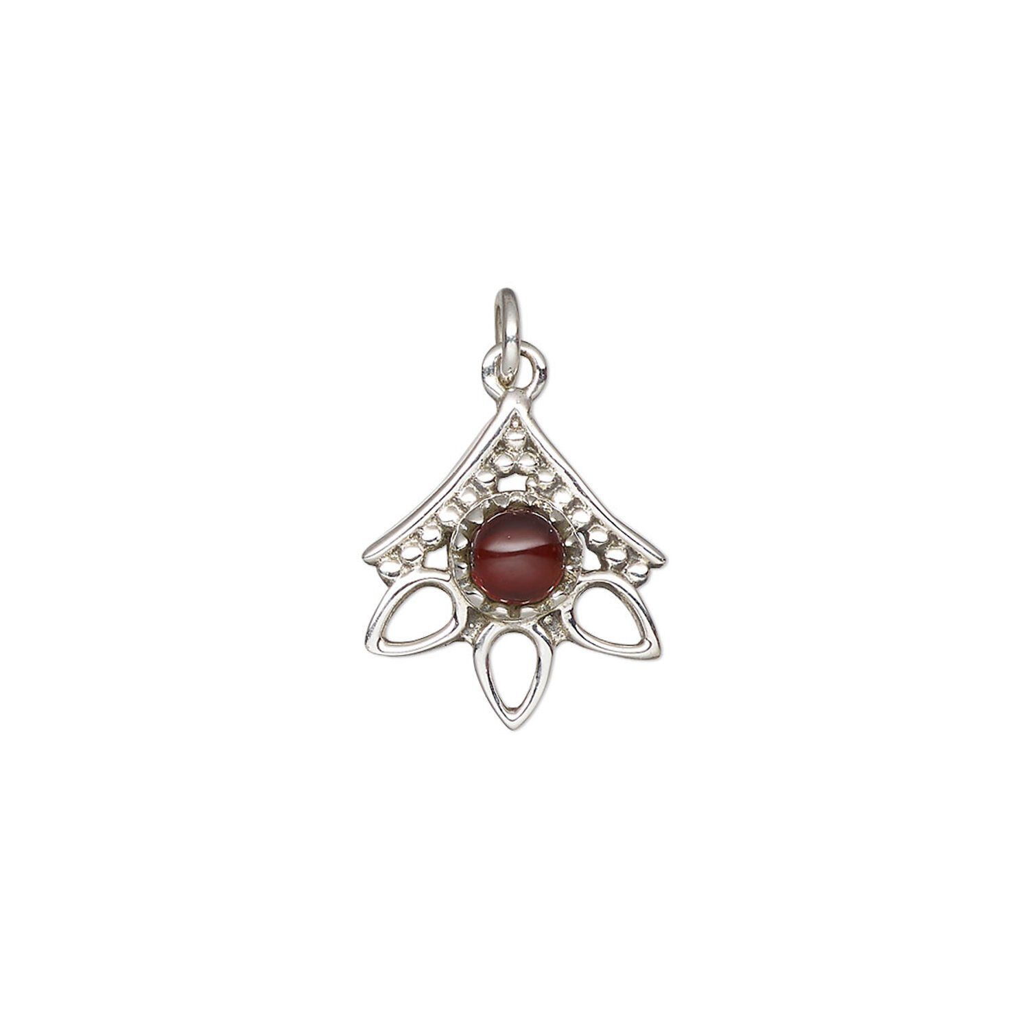 Garnet / sterling silver 1pkg1, antiqued open beaded drop natural 14x12.5mm