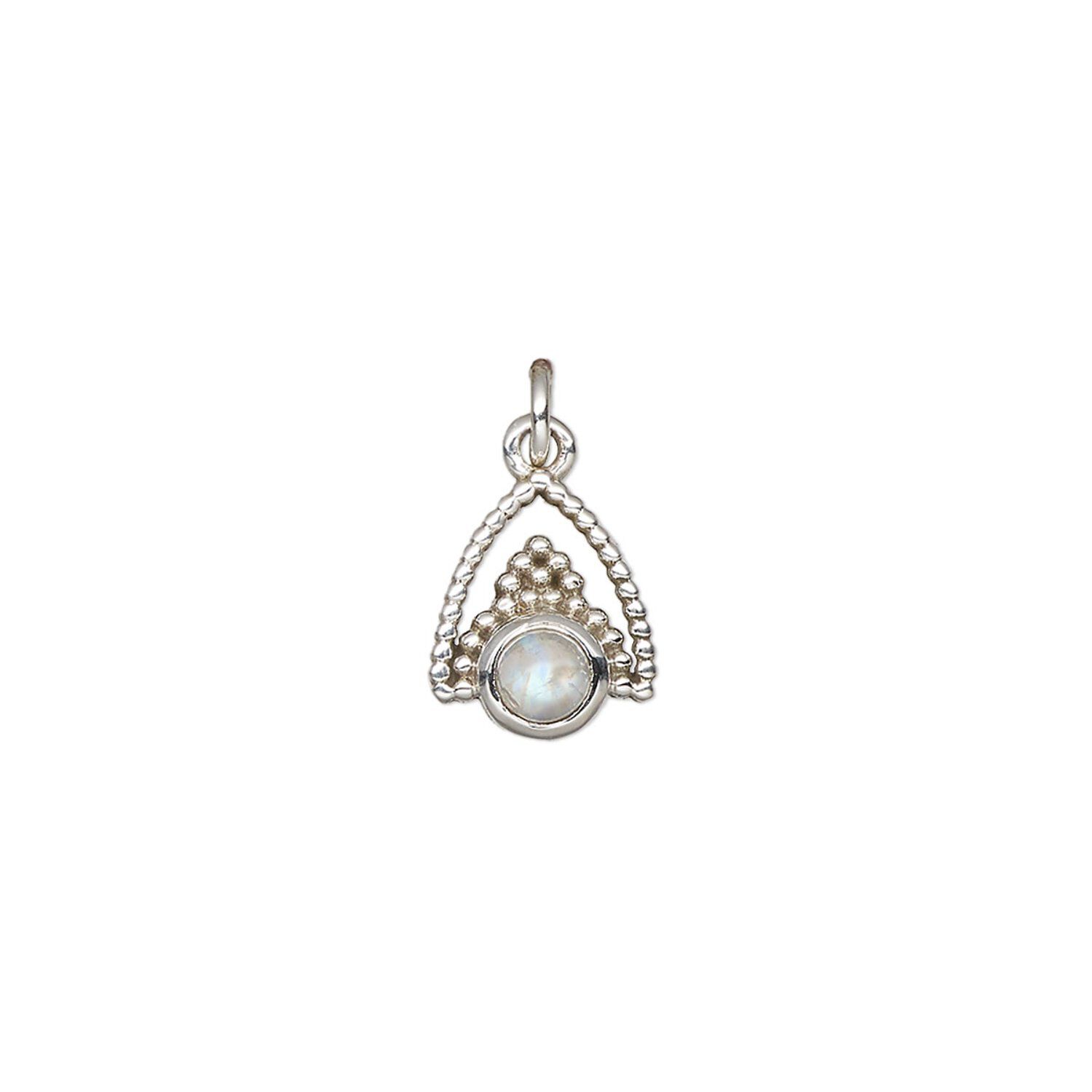 Rainbow moonstone / sterling silver 1pkg1, overall beaded arrowhead drop natural antiqued 11x9mm