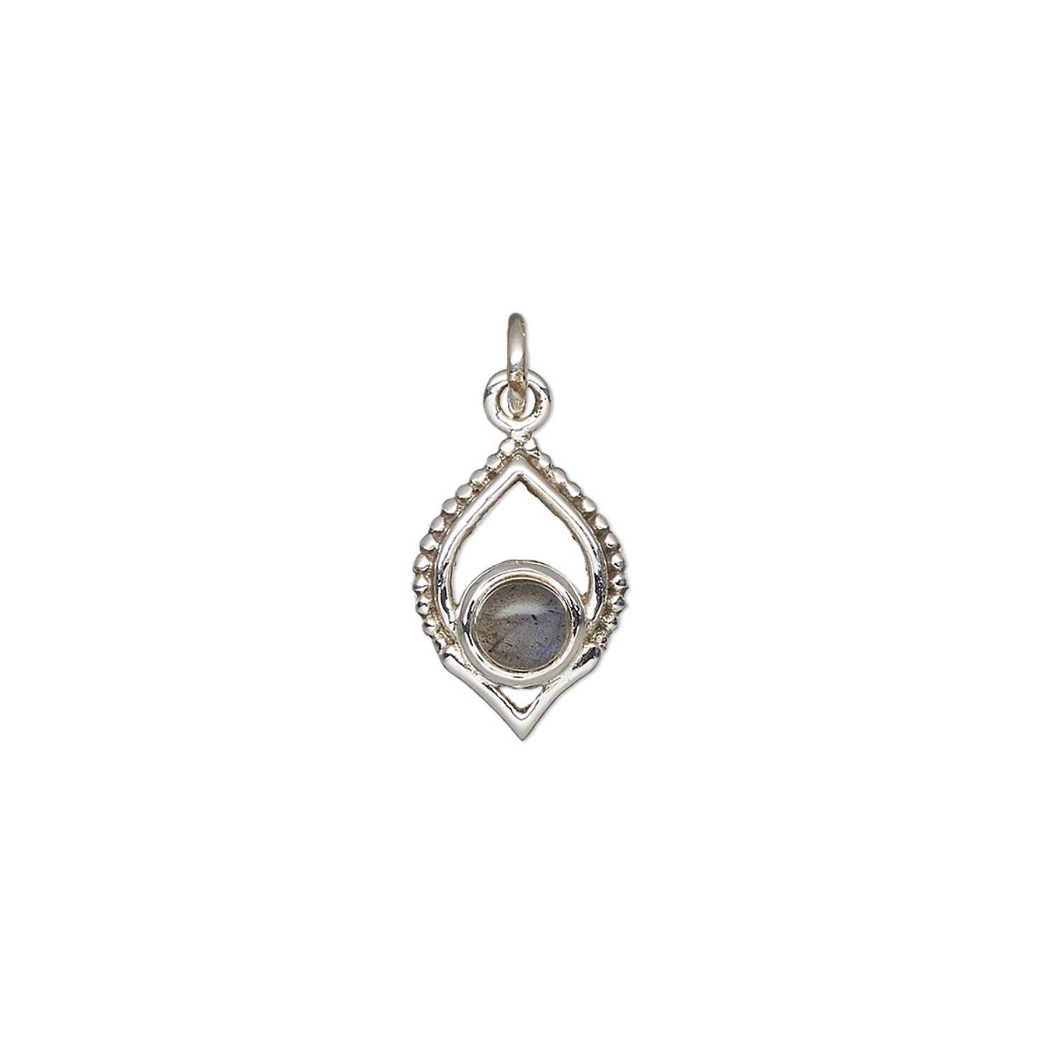 Labradorite / sterling silver 1pkg1, marquise drop natural antiqued 13.5x9mm
