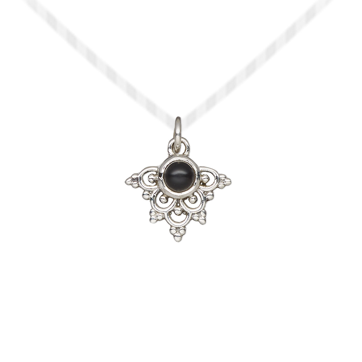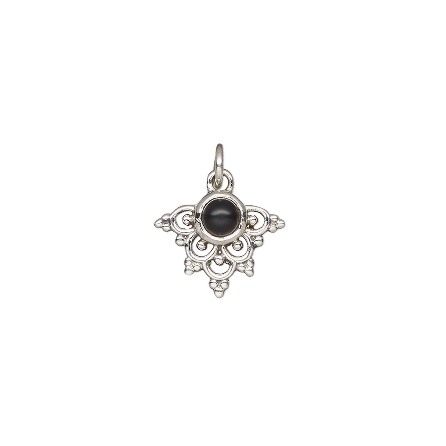 Black onyx / sterling silver 1pkg1, antiqued drop 13x11mm