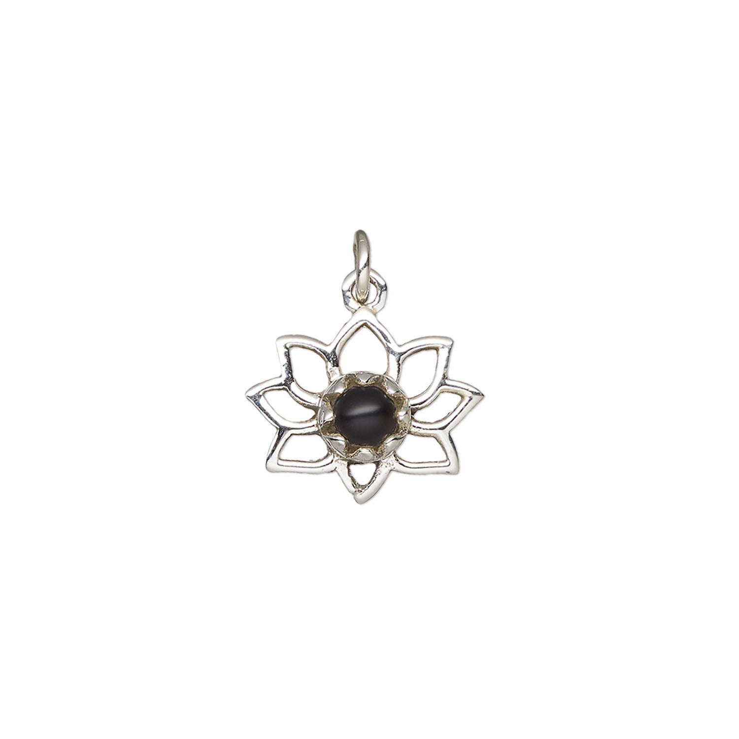 Black onyx / sterling silver 1pkg1, antiqued open lotus drop 14.5x12mm