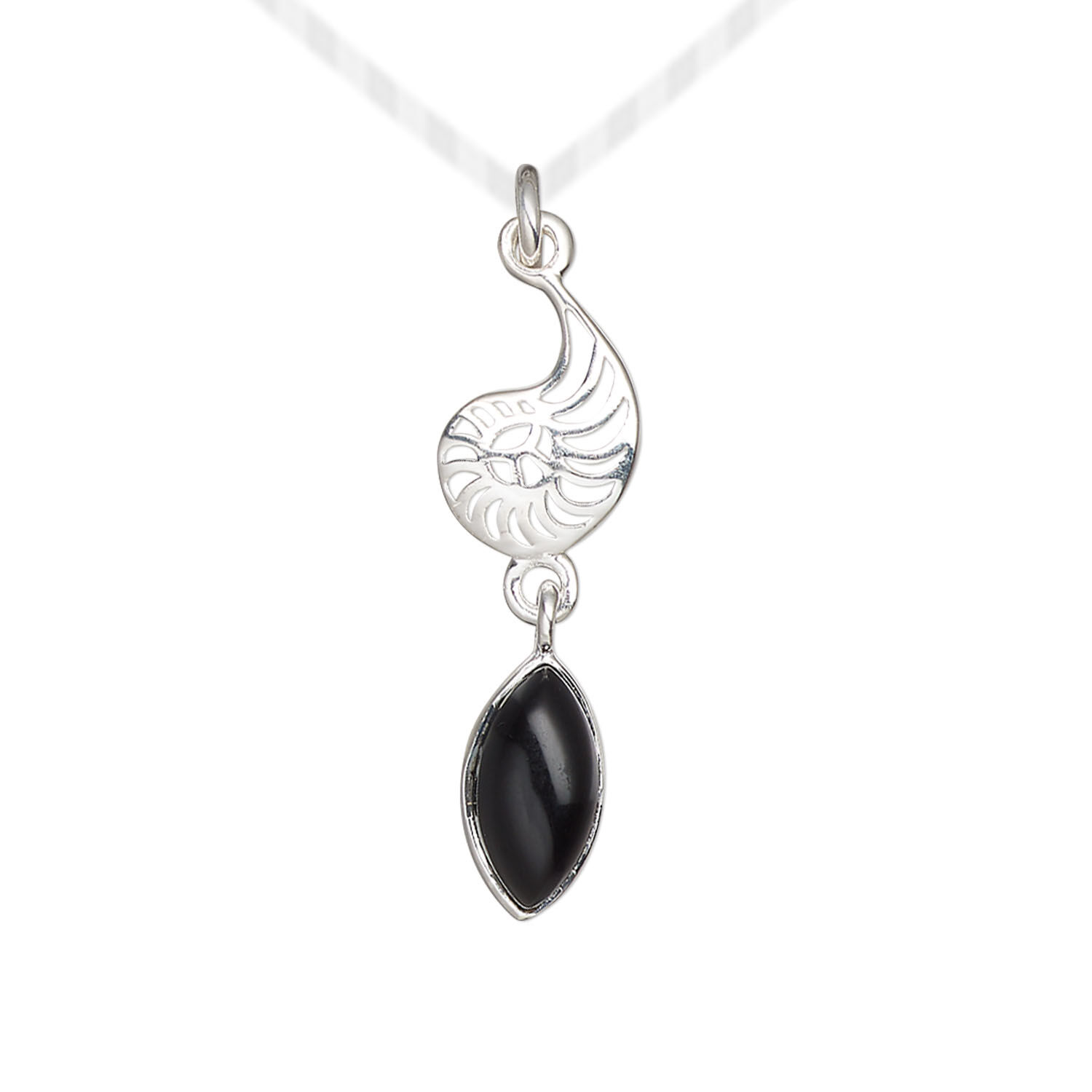 Black onyx / sterling silver 1pkg1, antiqued nautilus drop 26x8mm