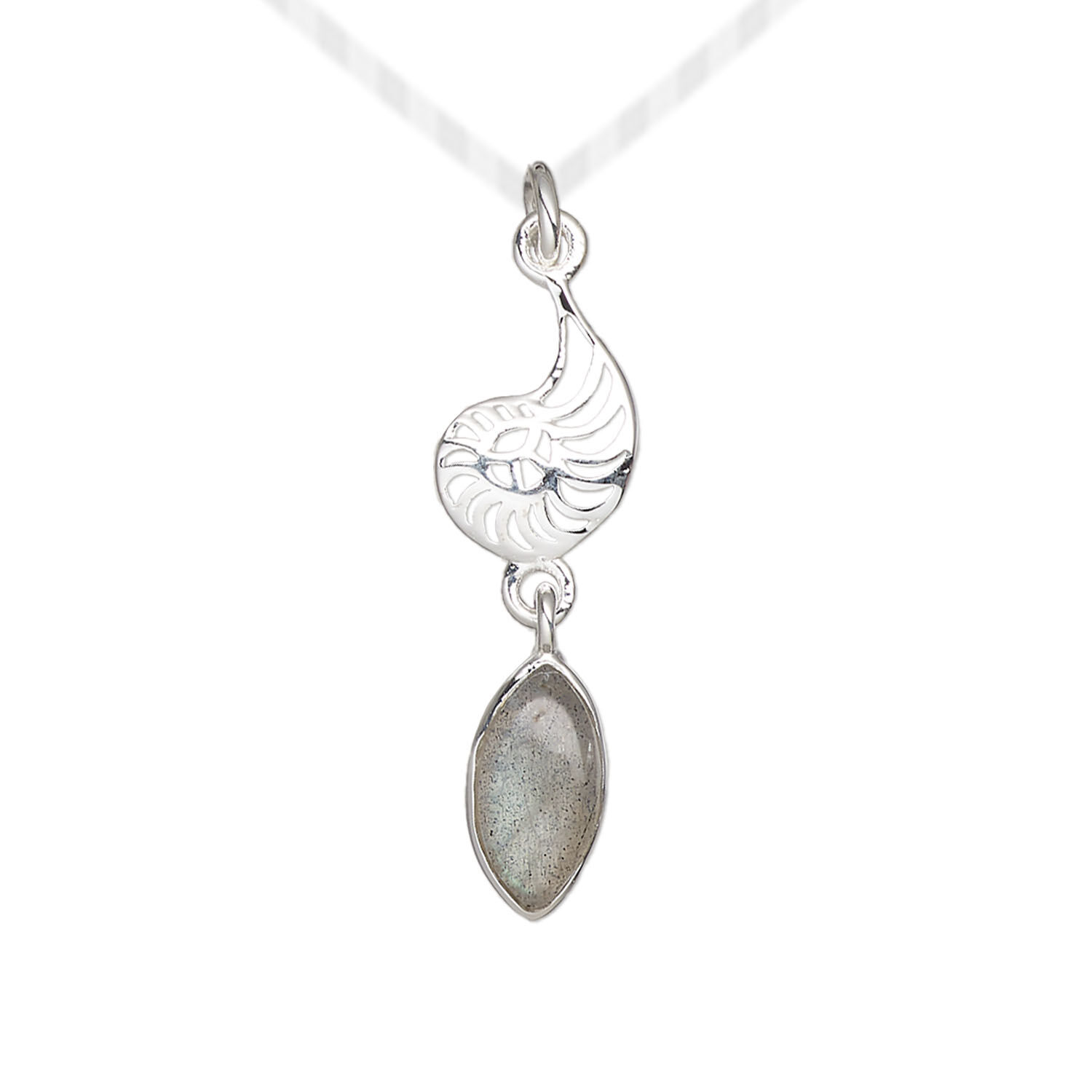 Labradorite / sterling silver 1pkg1, nautilus drop natural antiqued 26x8mm
