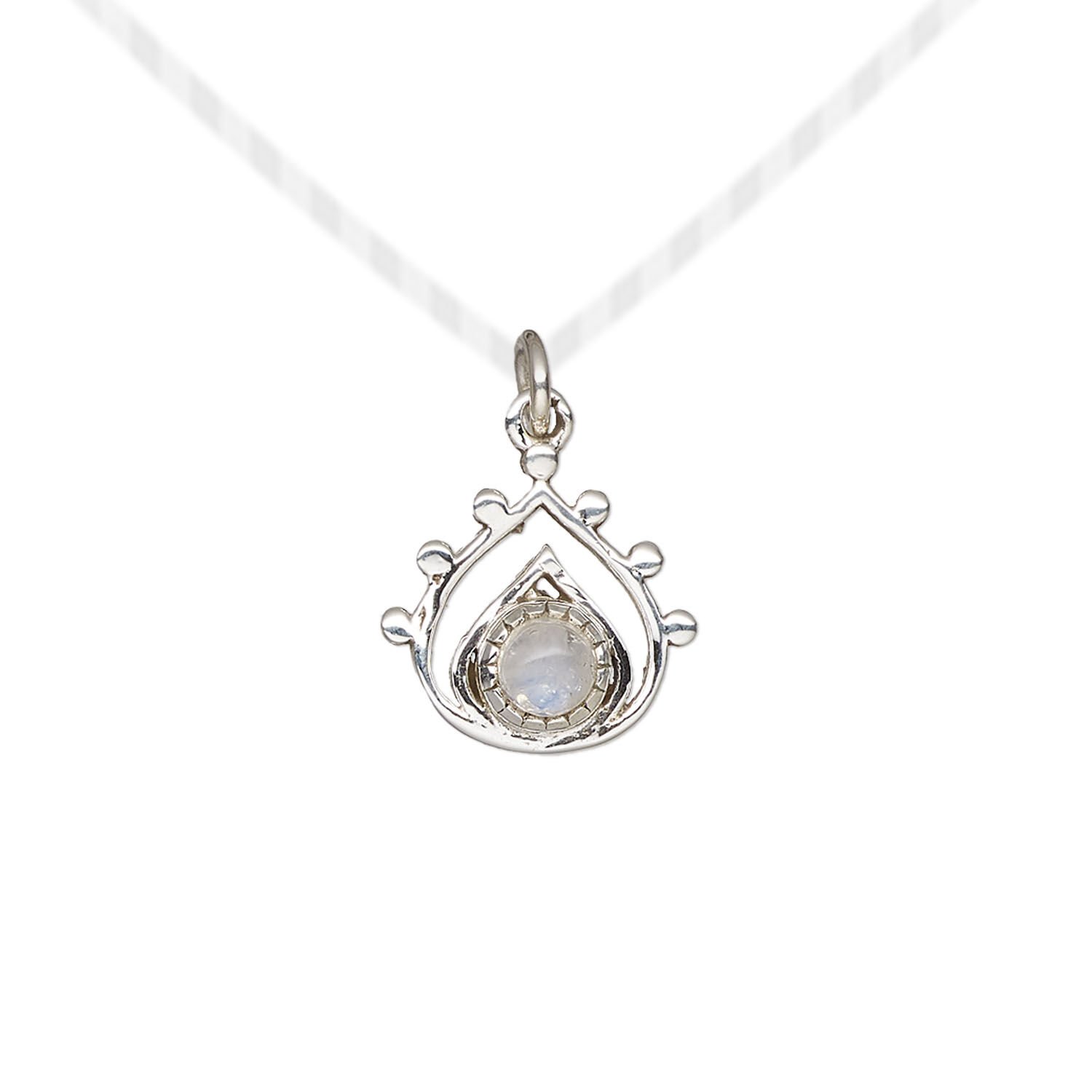 Antique sterling silver drops featuring set rainbow moonstone gemstones are meticulously crafted treasures. These jeweled components are ideal for earring drops, personalized birthstone designs, minimalist jewelry trends and other sellable creations. Pair them with the matching earrings for a charming jewelry set.