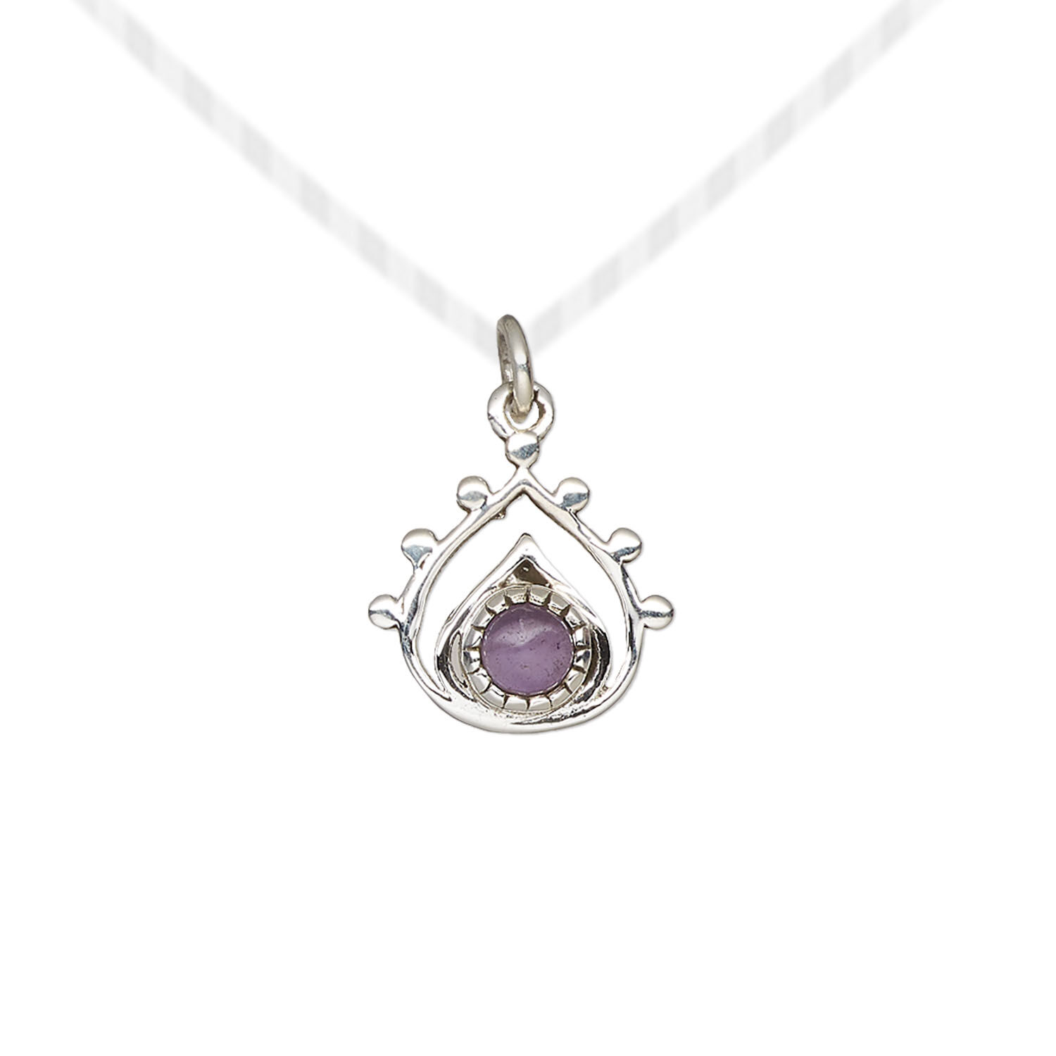 Antique sterling silver drops featuring set amethyst gemstones are meticulously crafted treasures. These jeweled components are ideal for earring drops, personalized birthstone designs, minimalist jewelry trends and other sellable creations. Pair them with the matching earrings for a charming jewelry set.