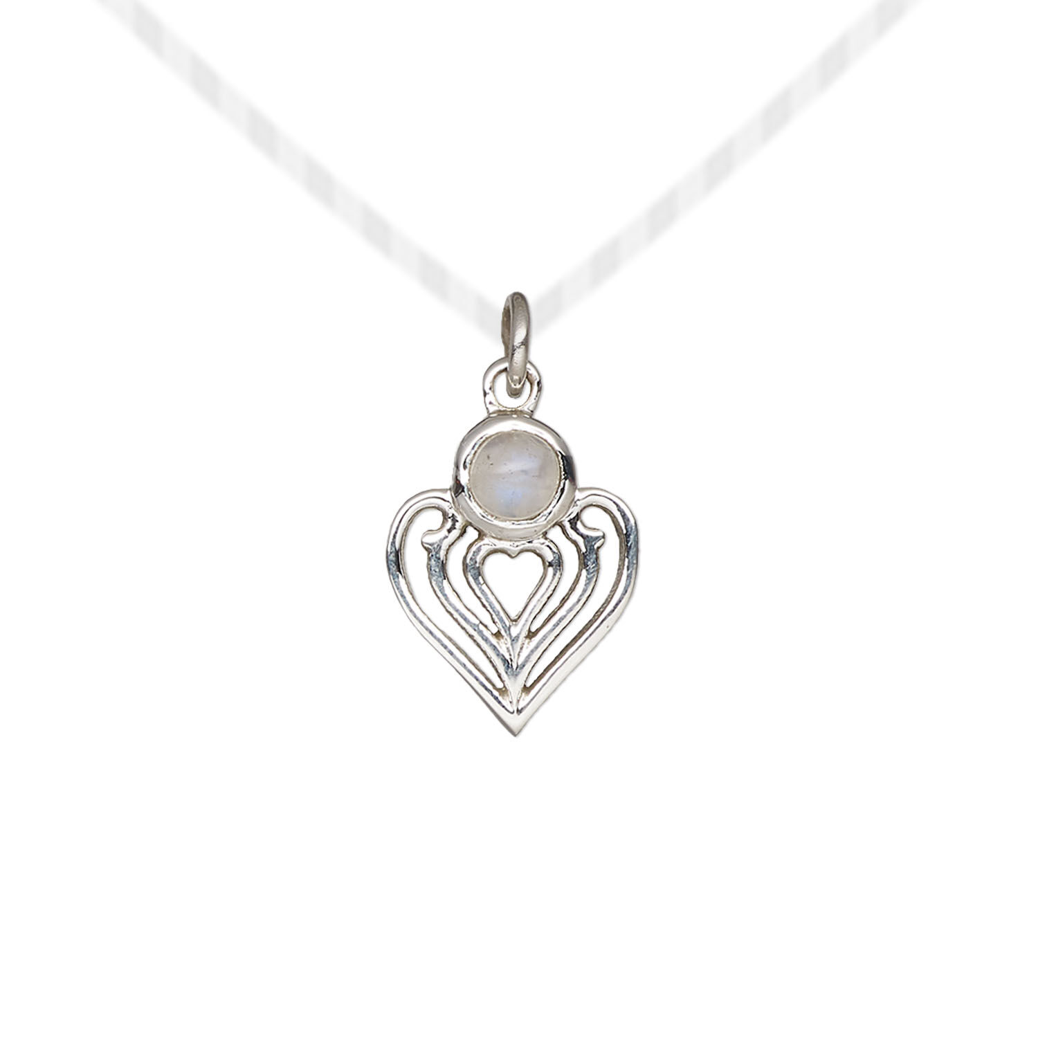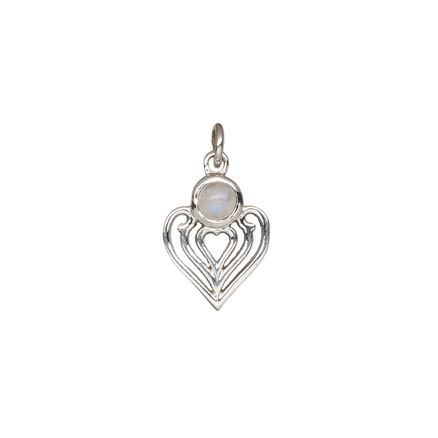 Rainbow moonstone / sterling silver 1pkg1, heart drop natural antiqued 14x11mm
