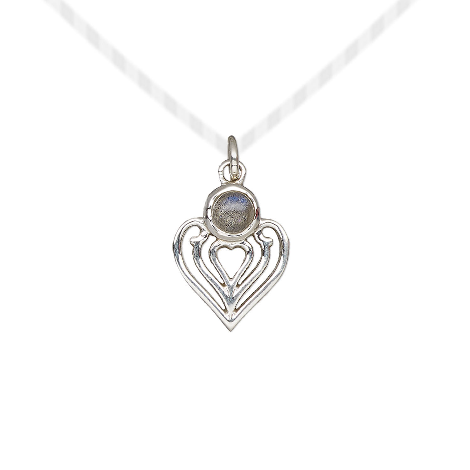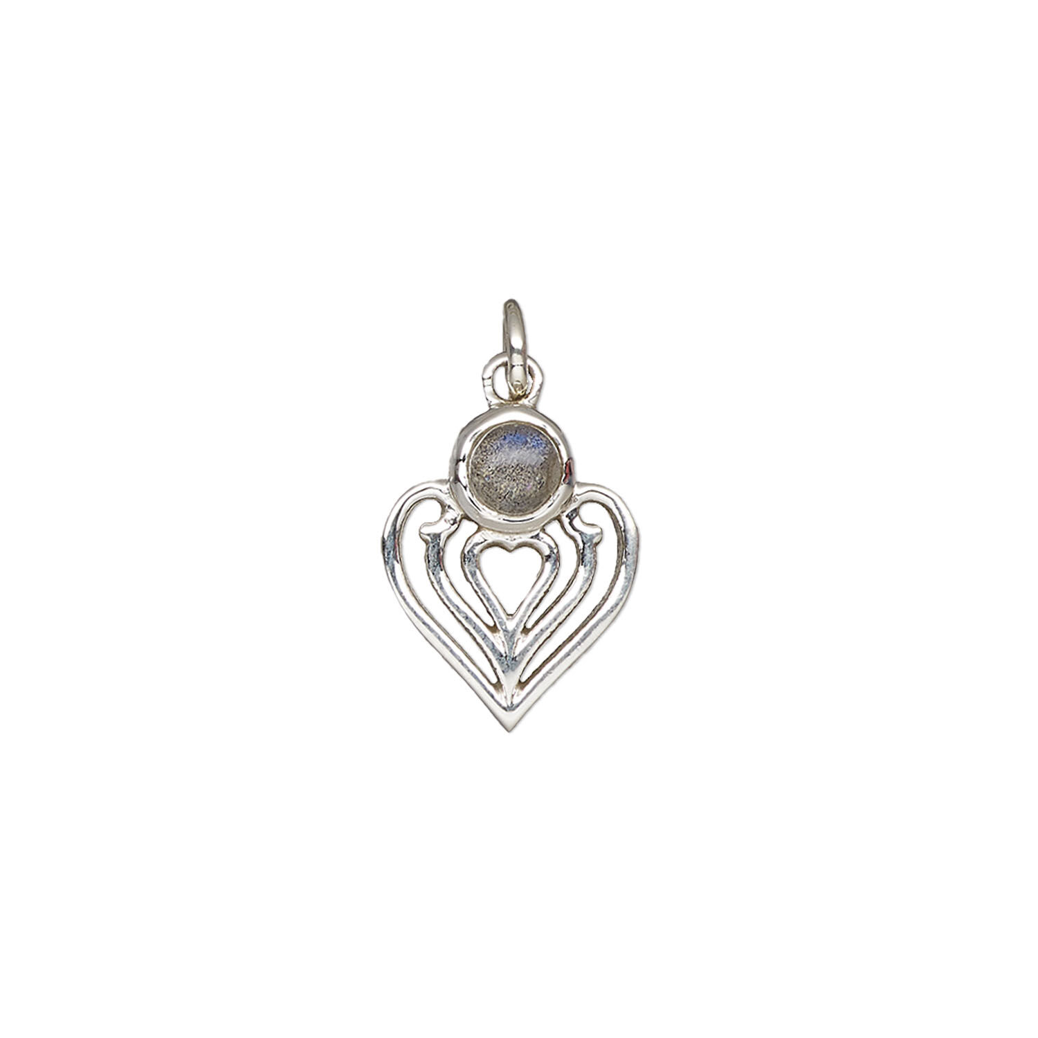 Labradorite / sterling silver 1pkg1, heart drop natural antiqued 14x11mm