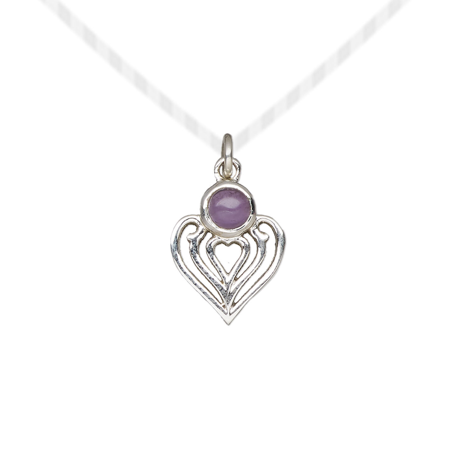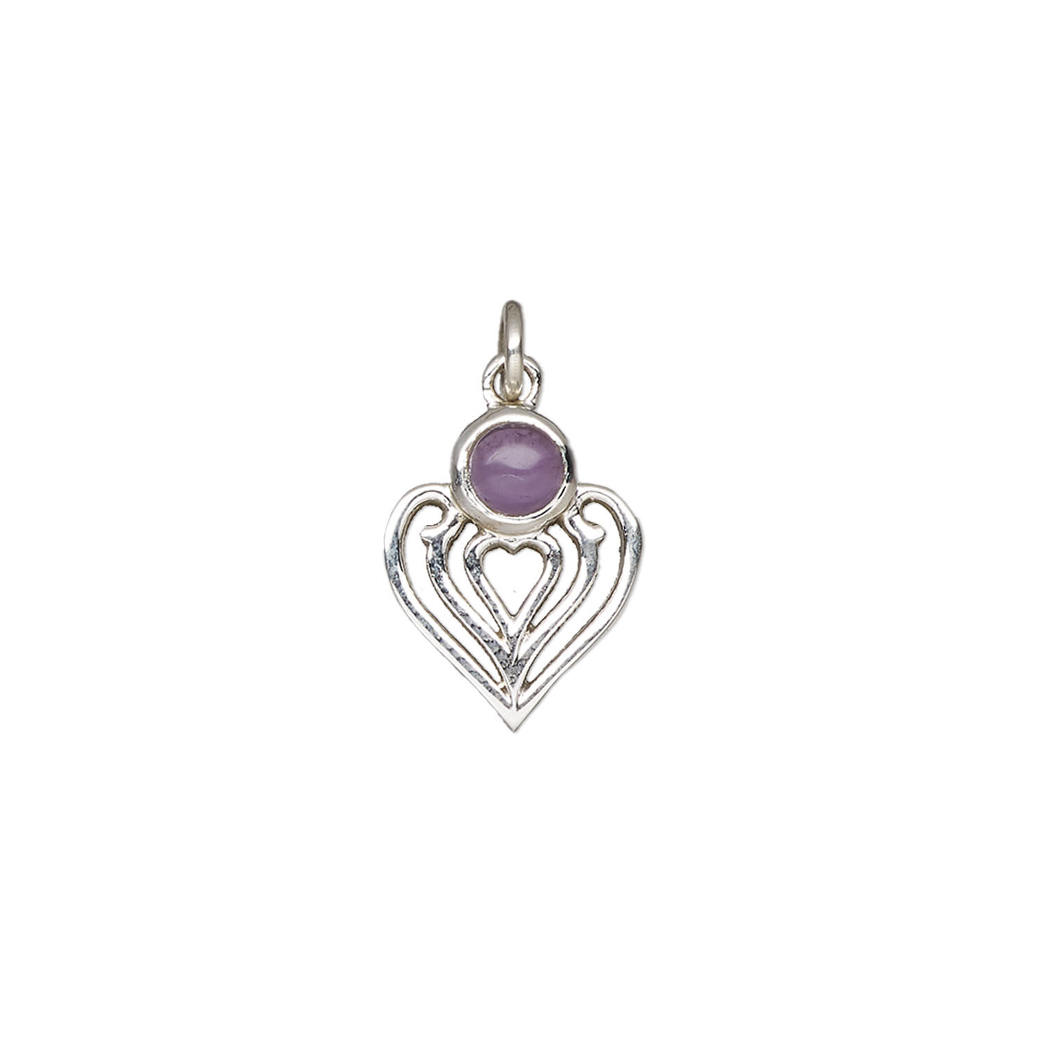 Amethyst / sterling silver 1pkg1, heart drop natural antiqued 14x11mm
