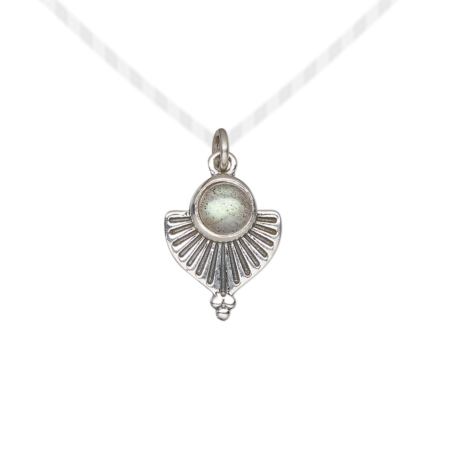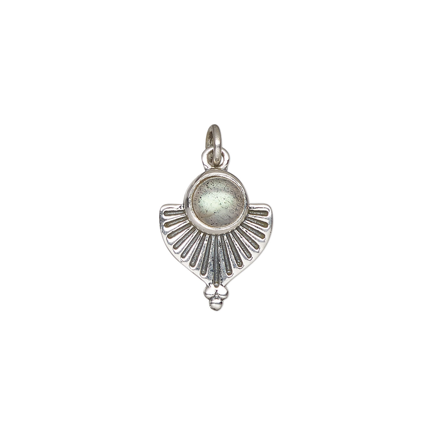 Labradorite / sterling silver 1pkg1, fan drop natural antiqued 14x11.5mm
