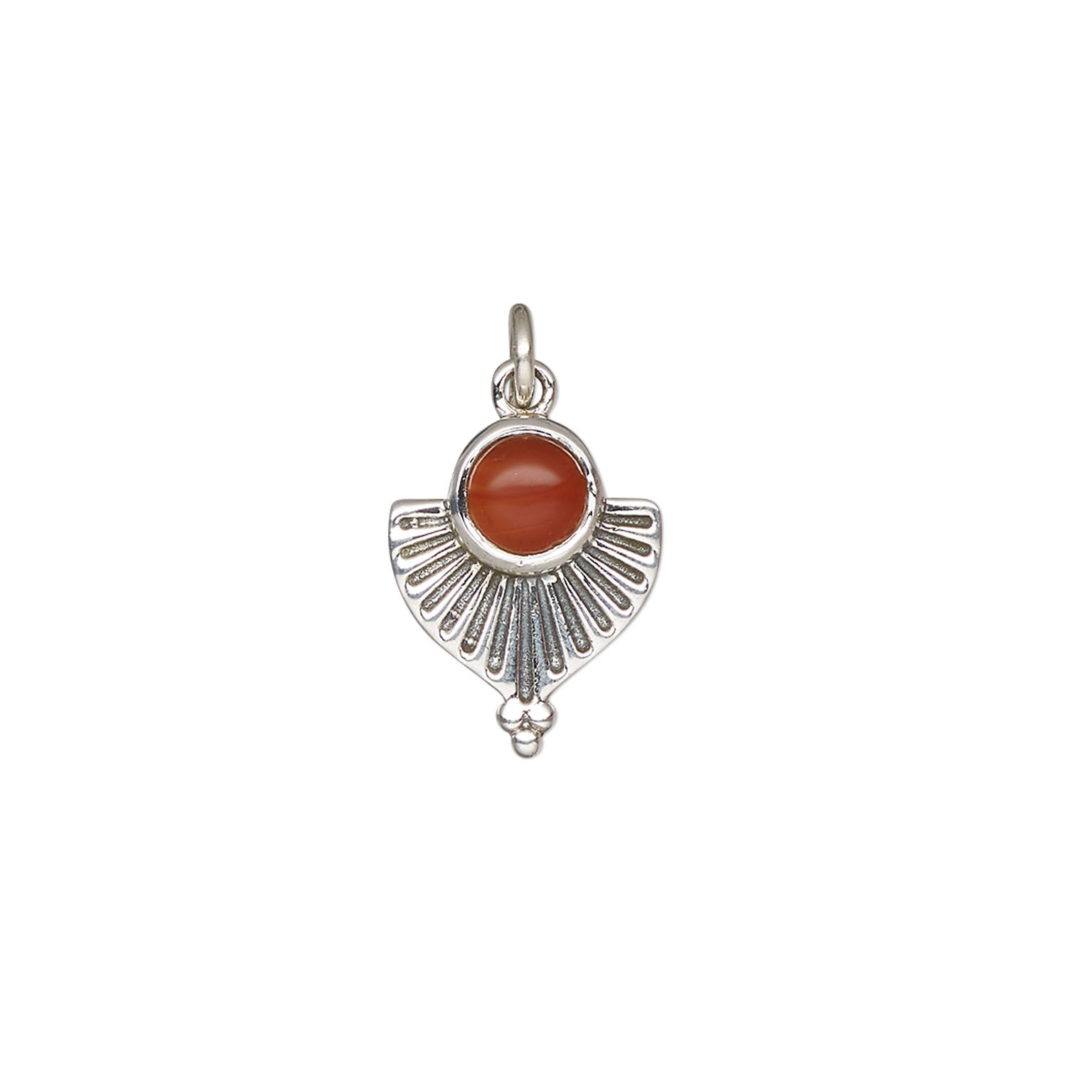 Carnelian / sterling silver 1pkg1, fan drop antiqued 14x11.5mm