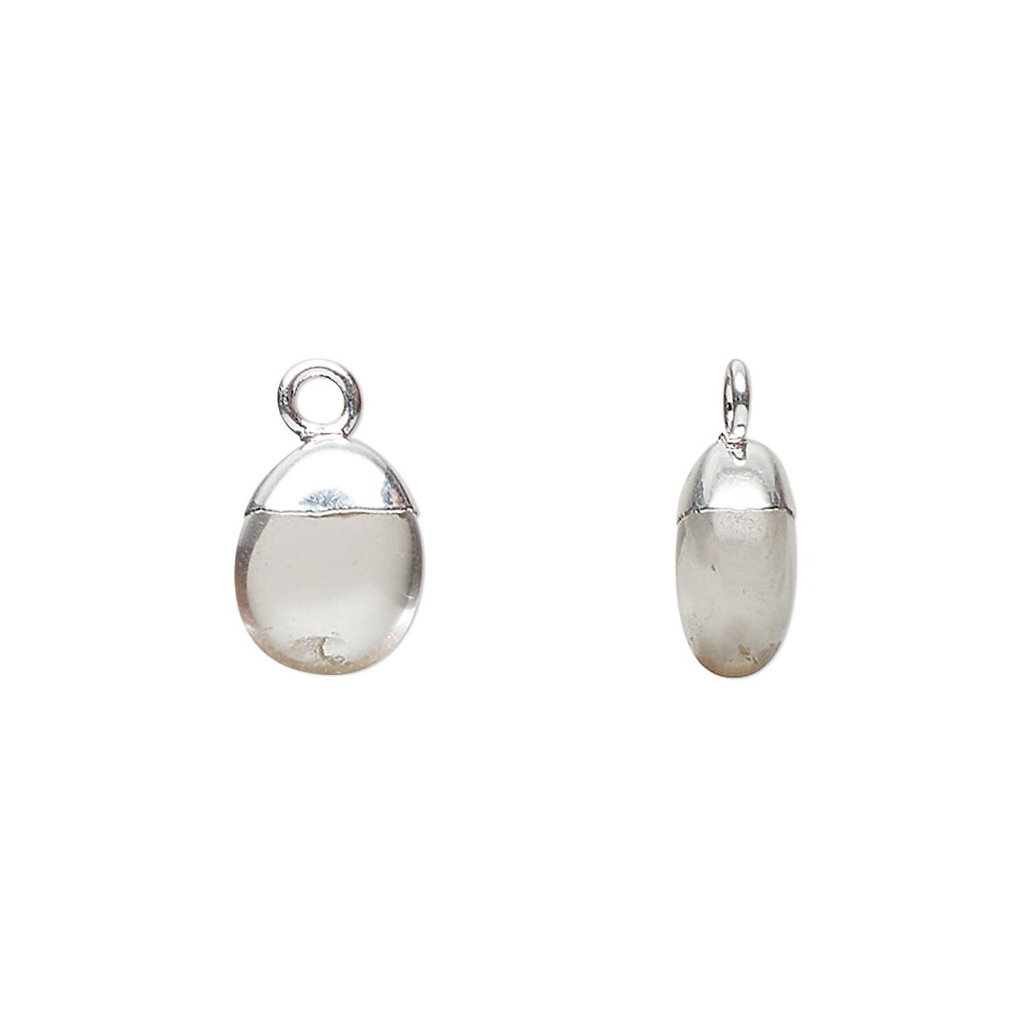 A smooth, puffed oval of shining quartz crystal is capped with silver-plated copper and a sterling silver loop for a finished look. Add this gorgeous drop to a chain for minimalist necklace and bracelet styles or in groups for even more color and shine. Attach pairs to your favorite earring findings for quick and easy jewelry.
