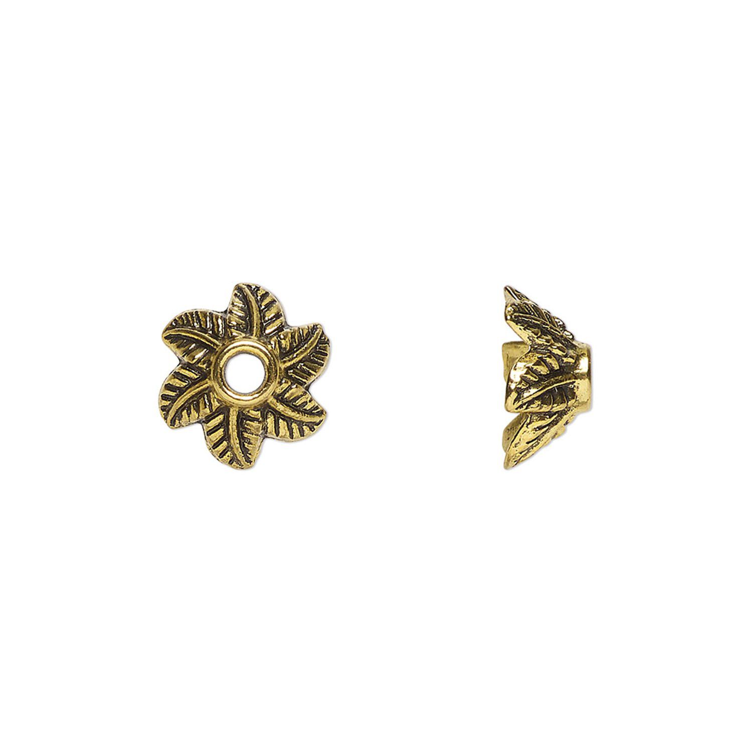 Bead cap, antiqued gold-finished "pewter" (zinc-based alloy), 11x6mm leaf, fits 8-9mm beads. Sold per pkg of 20.