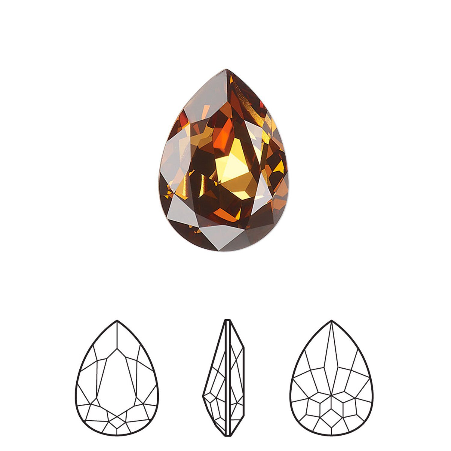 Fancy stone 6pk light amber foil back, Crystal Passions® 18x13mm pear 4320