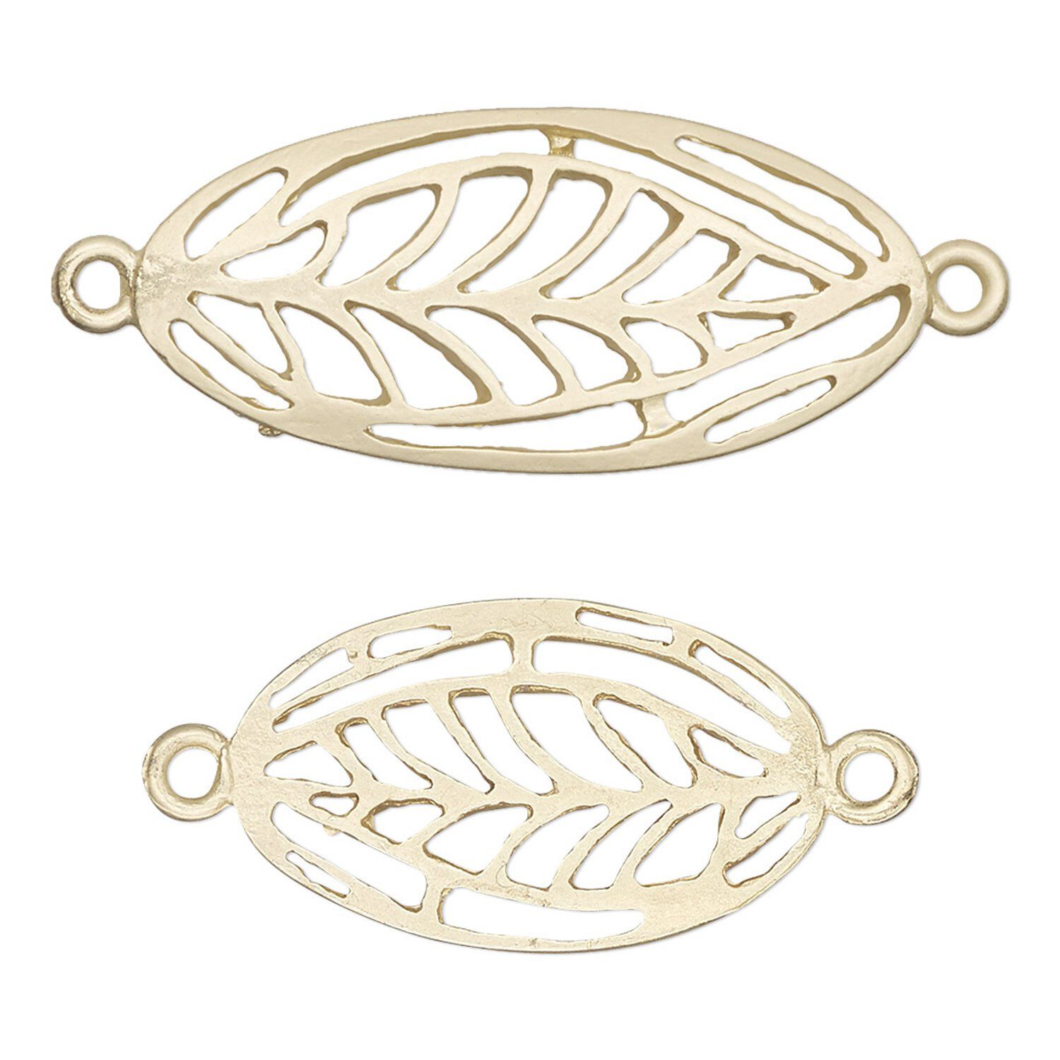 Focal and link, gold-finished "pewter" (zinc-based alloy), 25x15mm and 34x15mm matte oval with cutout leaf design. Sold per pkg of 8.