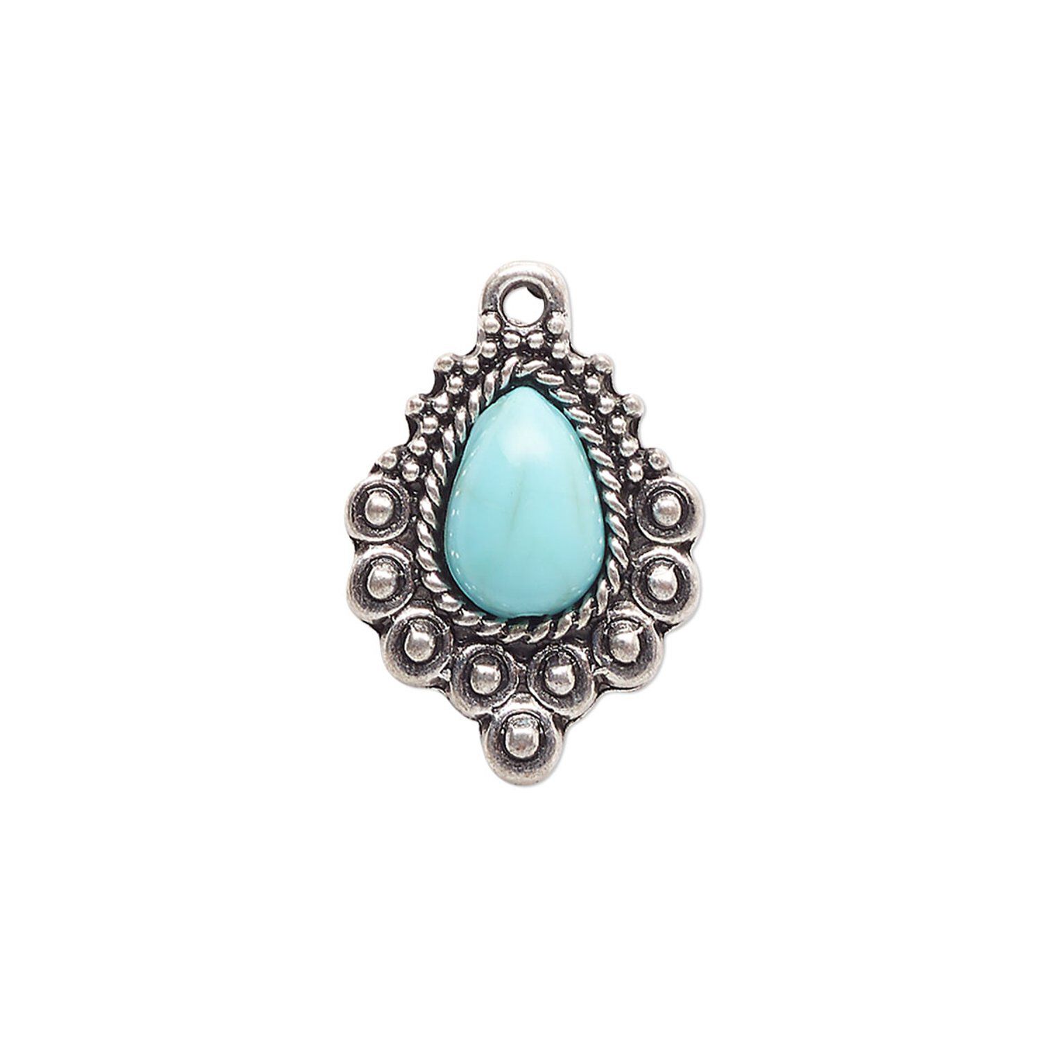 Get the look of sterling silver and turquoise gemstones for less with these zinc-based "pewter" and resin drops. Ideal for Southwestern- and Native American-inspired jewelry, they feature intricate details and stunning colors.