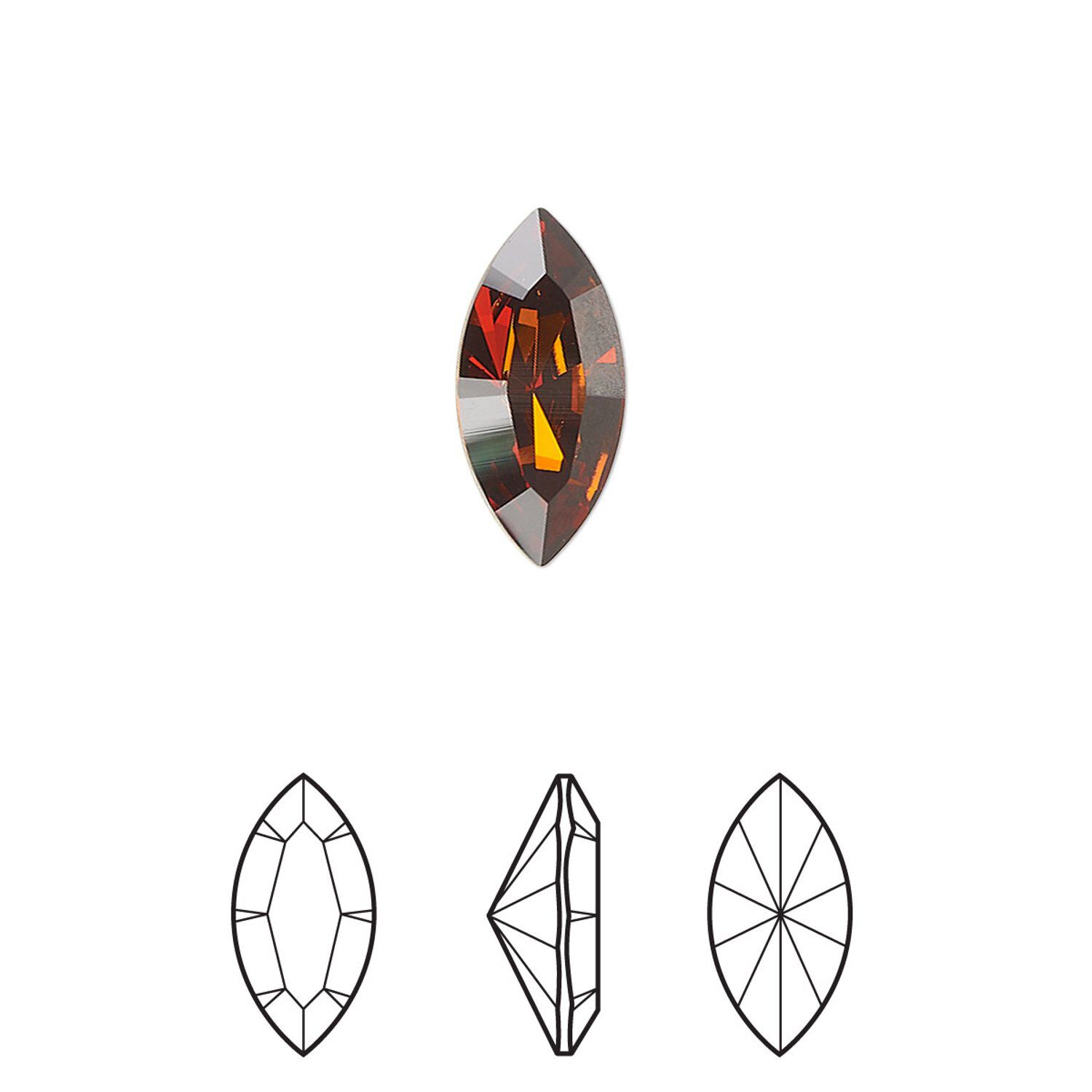 Fancy stone 2pk smoked amber foil back, Crystal Passions® 15x7mm navette 4228