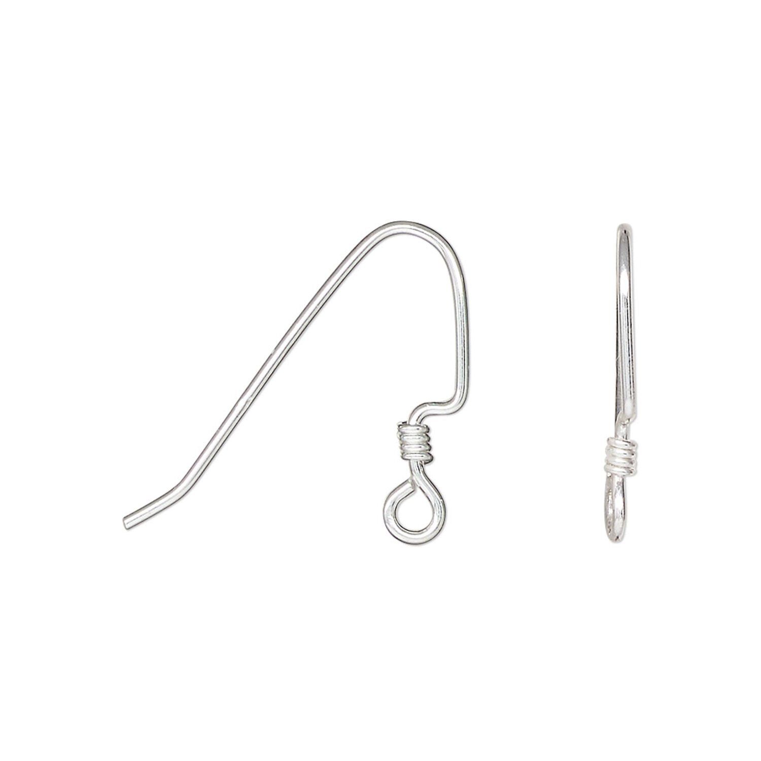Ear wire, sterling silver, 17mm perfect balance angular fishhook with 2mm coil and open loop, 20 gauge. Sold per 25 pairs (50 ear wires).