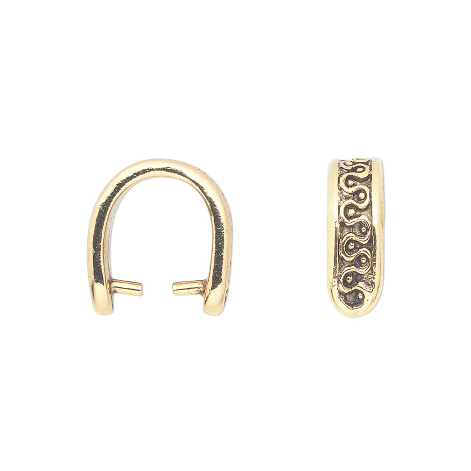 Bail, ice-pick. pewter (tin-based alloy), pkg/1, antique gold plate, 14x13mm with scroll design, 10mm grip length.