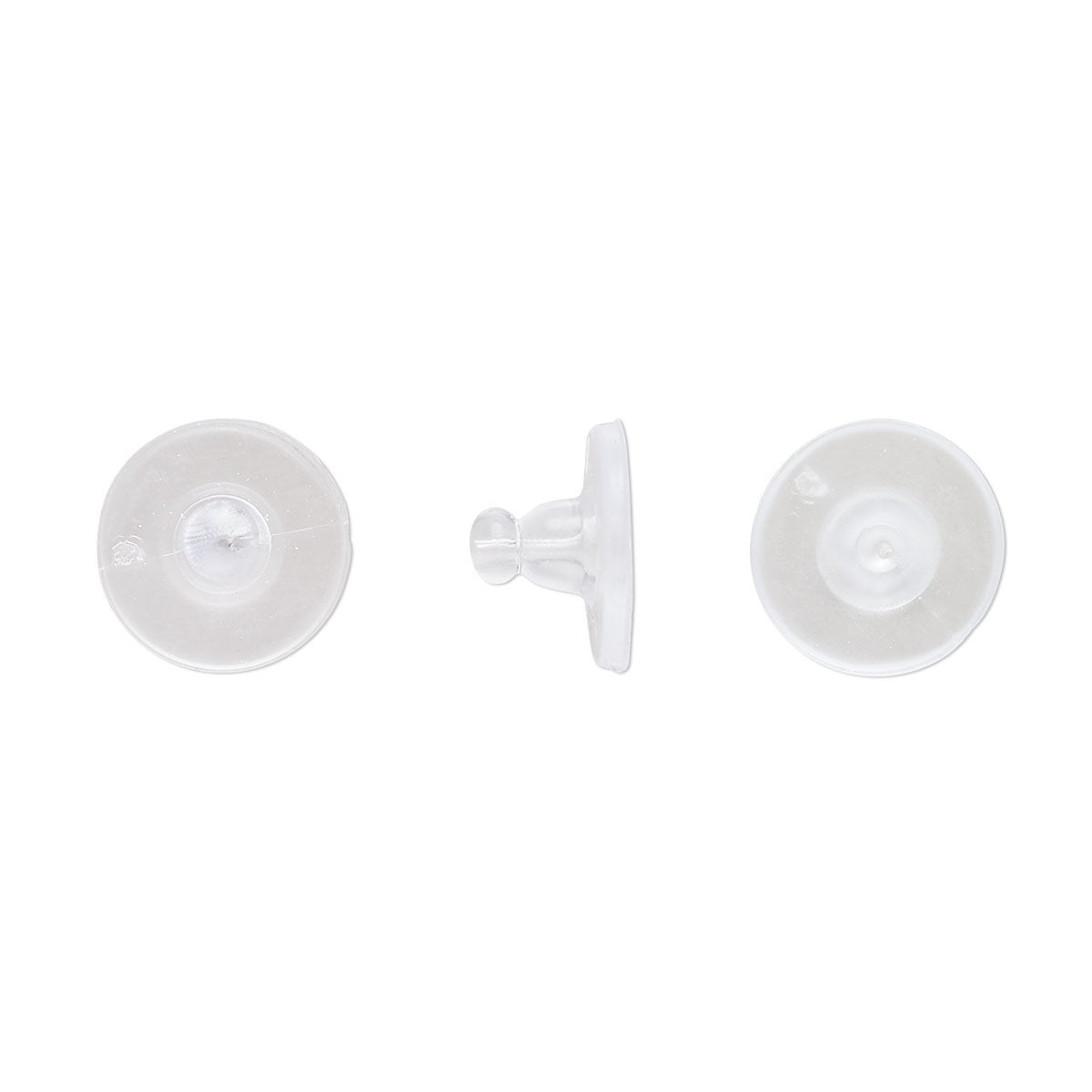 Fully drilled clear "rubber" earnuts cushion the skin, with a disc-shaped design that offers an easy grip while securing earrings in place. Comfortable and latex-free, these lightweight earnuts have a slight rigidity that makes them ideal for post-style earrings. These phthalate-free earnuts are CA Prop 65 and R.E.A.C.H compliant.