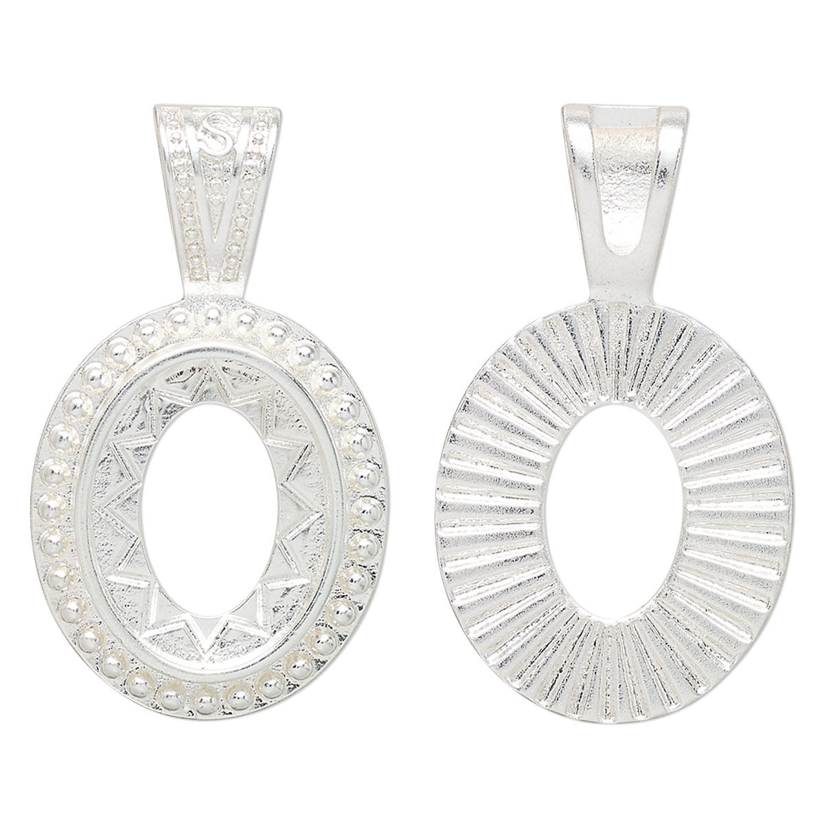 Pendant "pewter" zinc-based alloy 2pk 33x19mm glue-in 16x12mm oval setting, silver plate