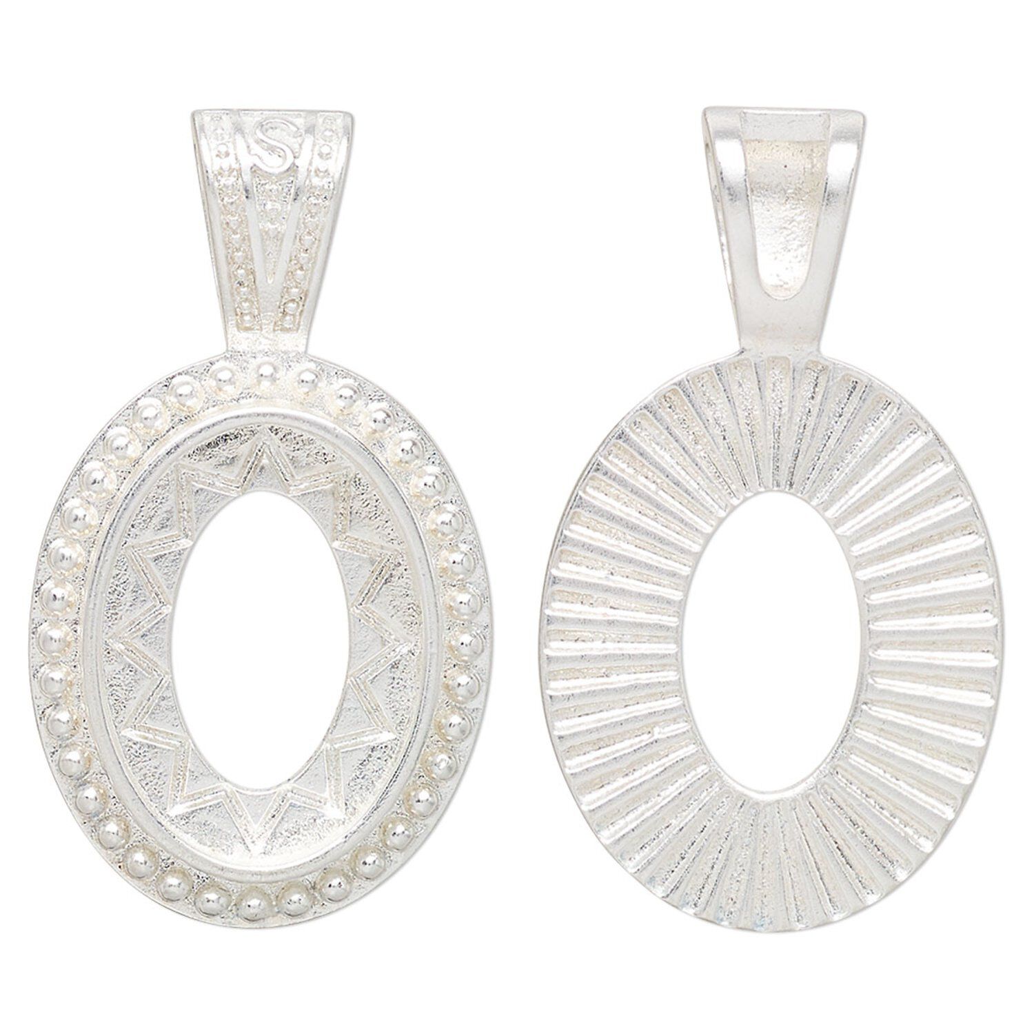 Pendant "pewter" zinc-based alloy 2pk 35x20mm glue-in 18x13mm oval setting, silver plate