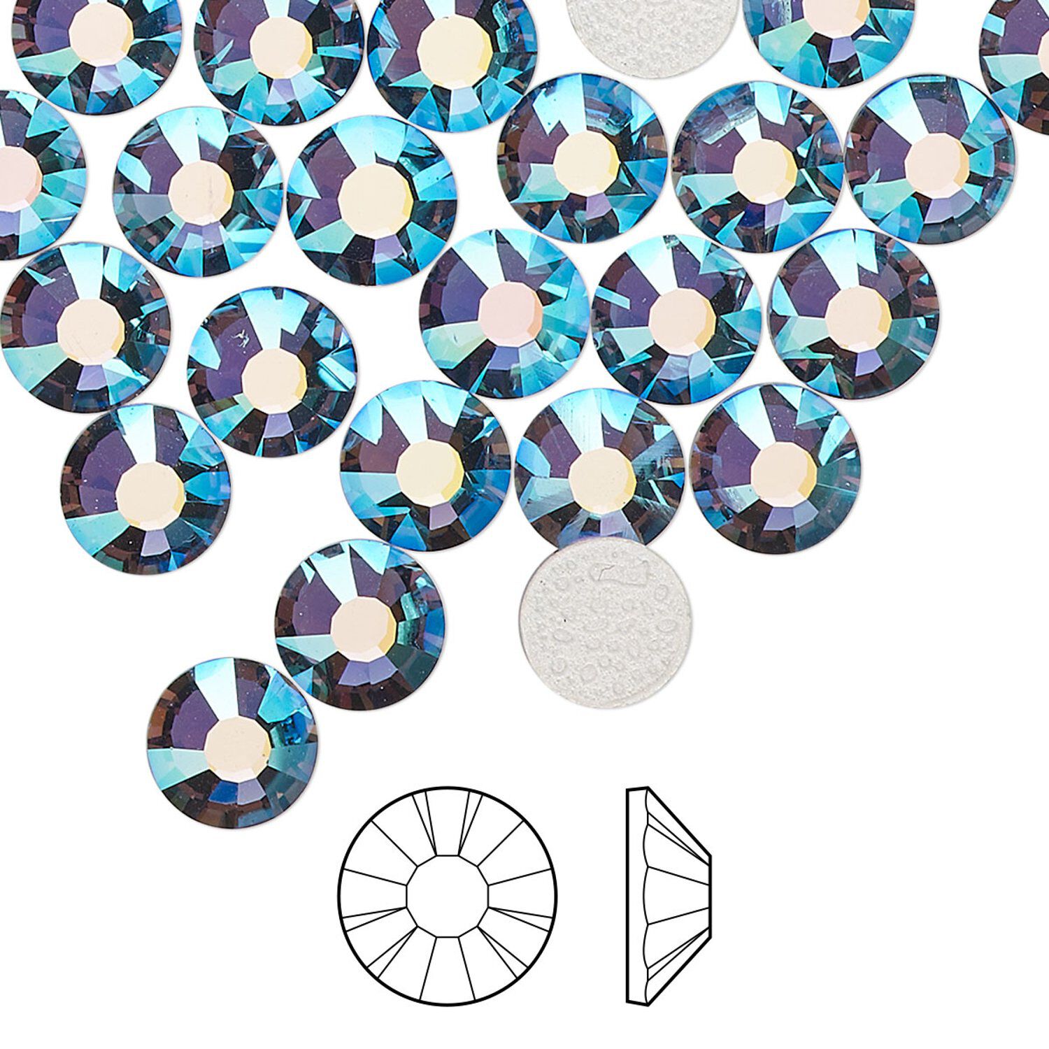 Flat back 12pk denim blue AB foil back, Preciosa MAXIMA Czech crystal hotfix rhinestone 7.069-7.272mm chaton rose round SS34