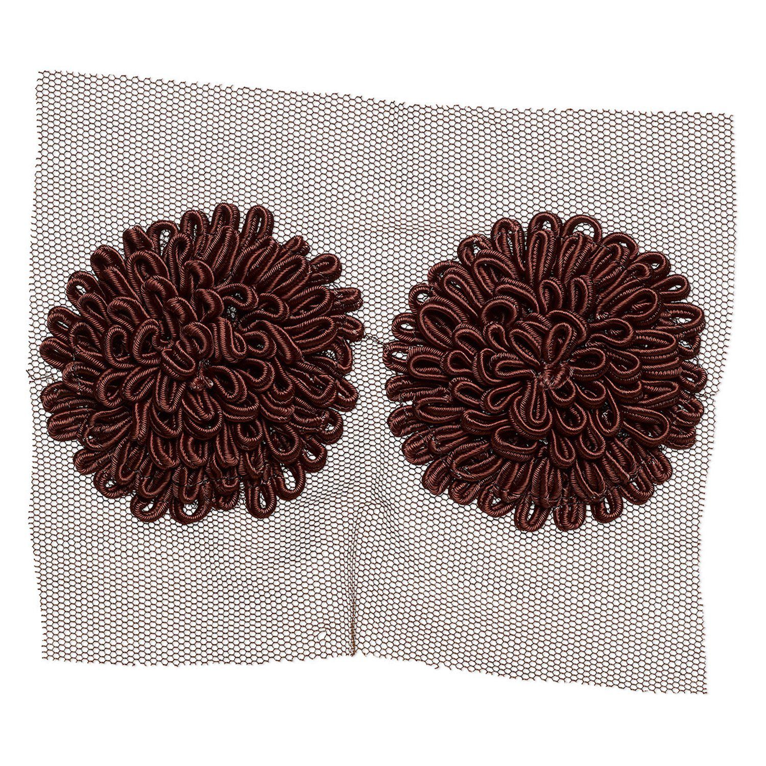 Sew-on component, fabric, brown, 66-68mm zinnia flower. Sold per pkg of 2.