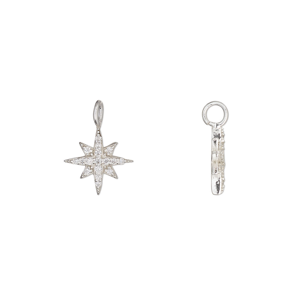 Charm 1pkg1 sterling silver / cubic zirconia 10.5x10.5mm star perpendicular loop, clear