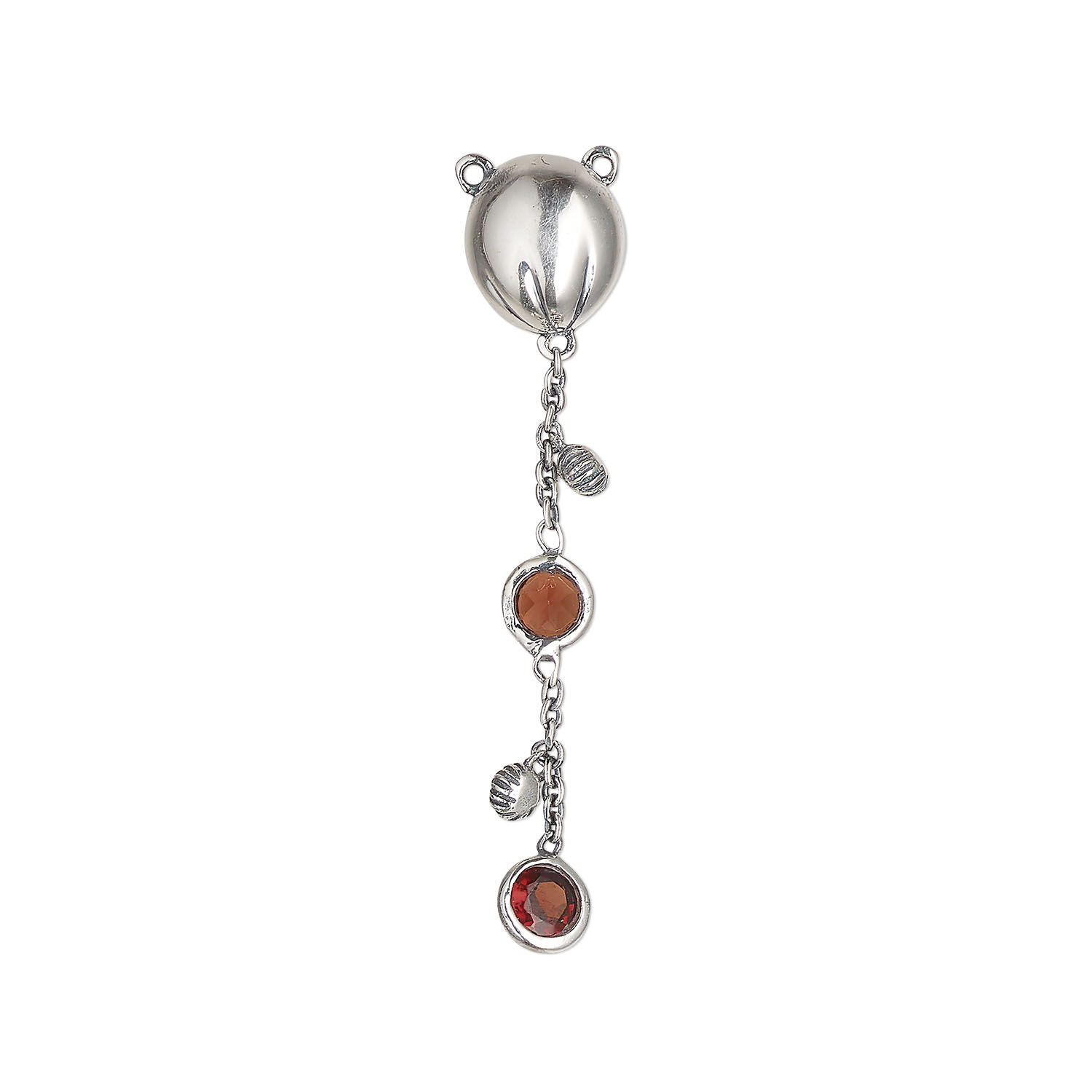 Connector 1pkg1, antiqued sterling silver and garnet, 7x6.5mm single-sided oval with 20mm chain / 4mm faceted stones / 2mm drops.