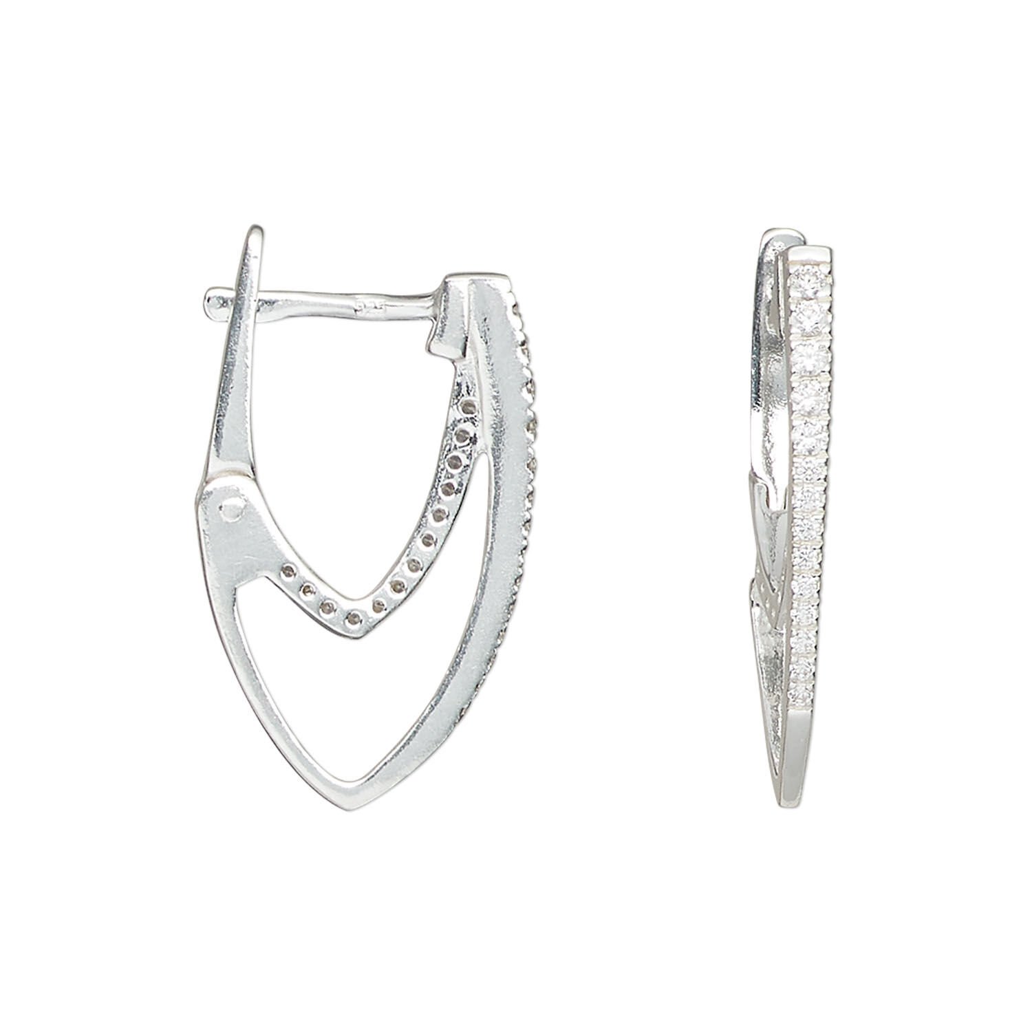 Stylish sterling silver earrings featuring double clear cubic zirconia marquise stones. At 23x15mm, they make a sparkling focal point for elegant jewelry creations.