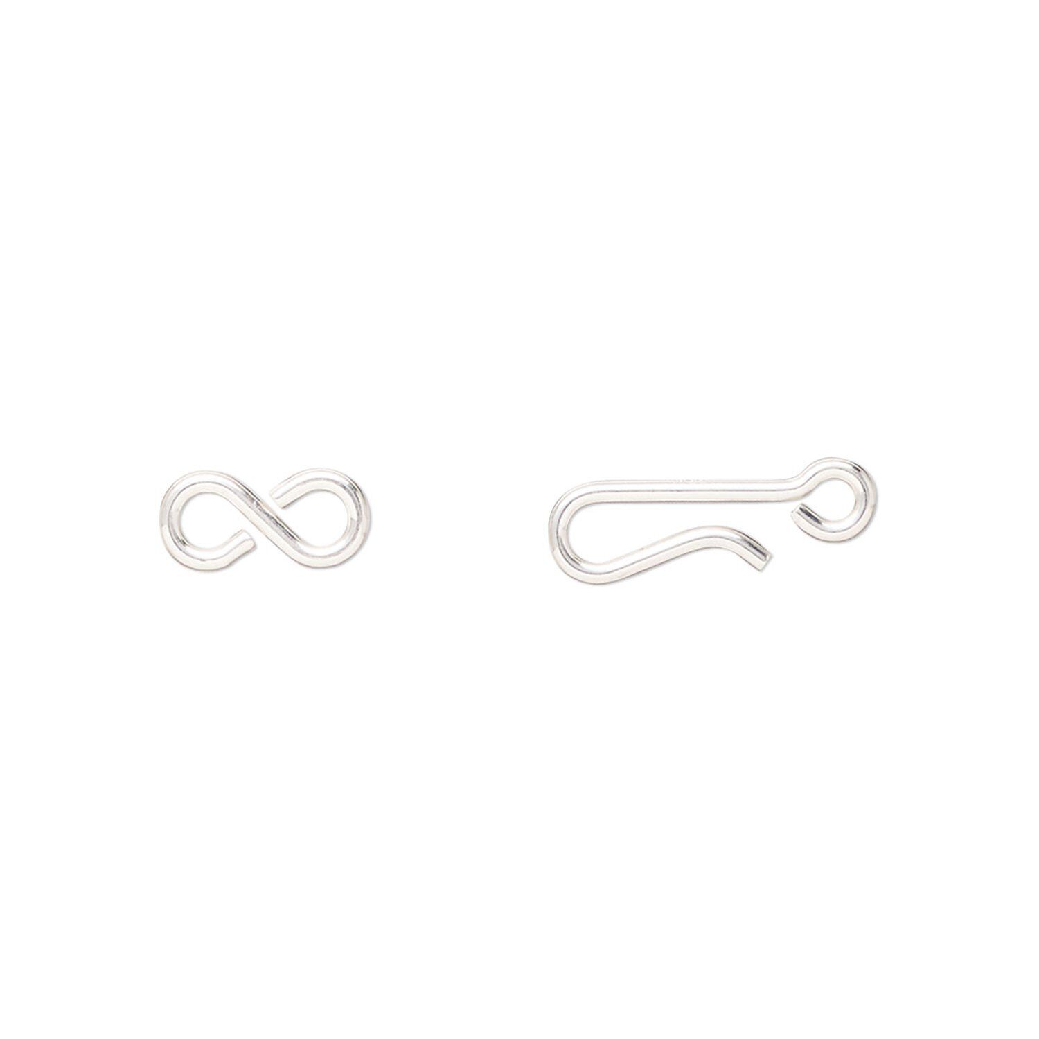 Easy to close and easy to use, this sterling silver hook-and-eye clasp is an excellent choice for necklaces and bracelets. Each set includes (1) 10x4mm hook and (1) 9x4mm figure-8 eye.