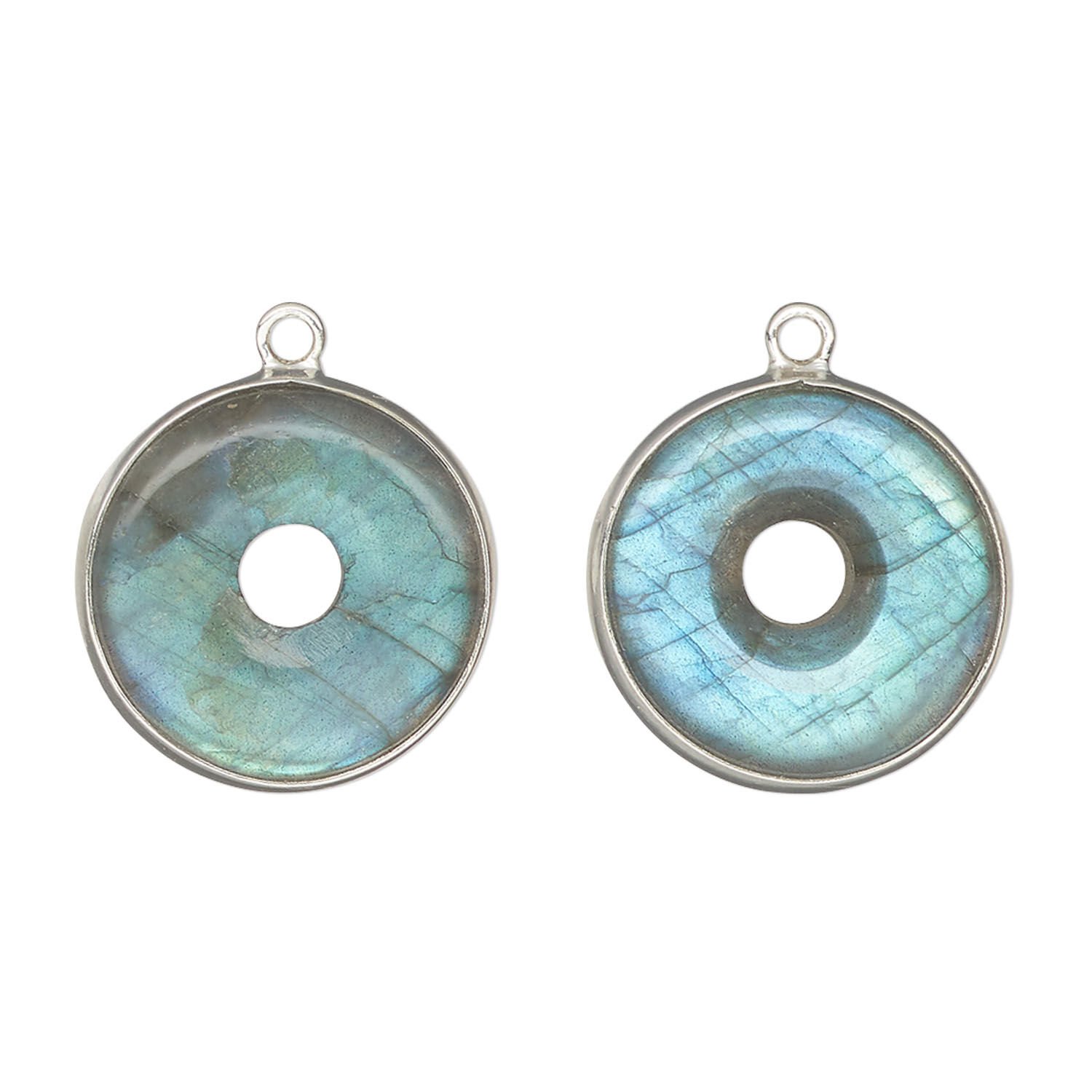 Drop, labradorite (natural) and sterling silver, 16mm donut focal drop.