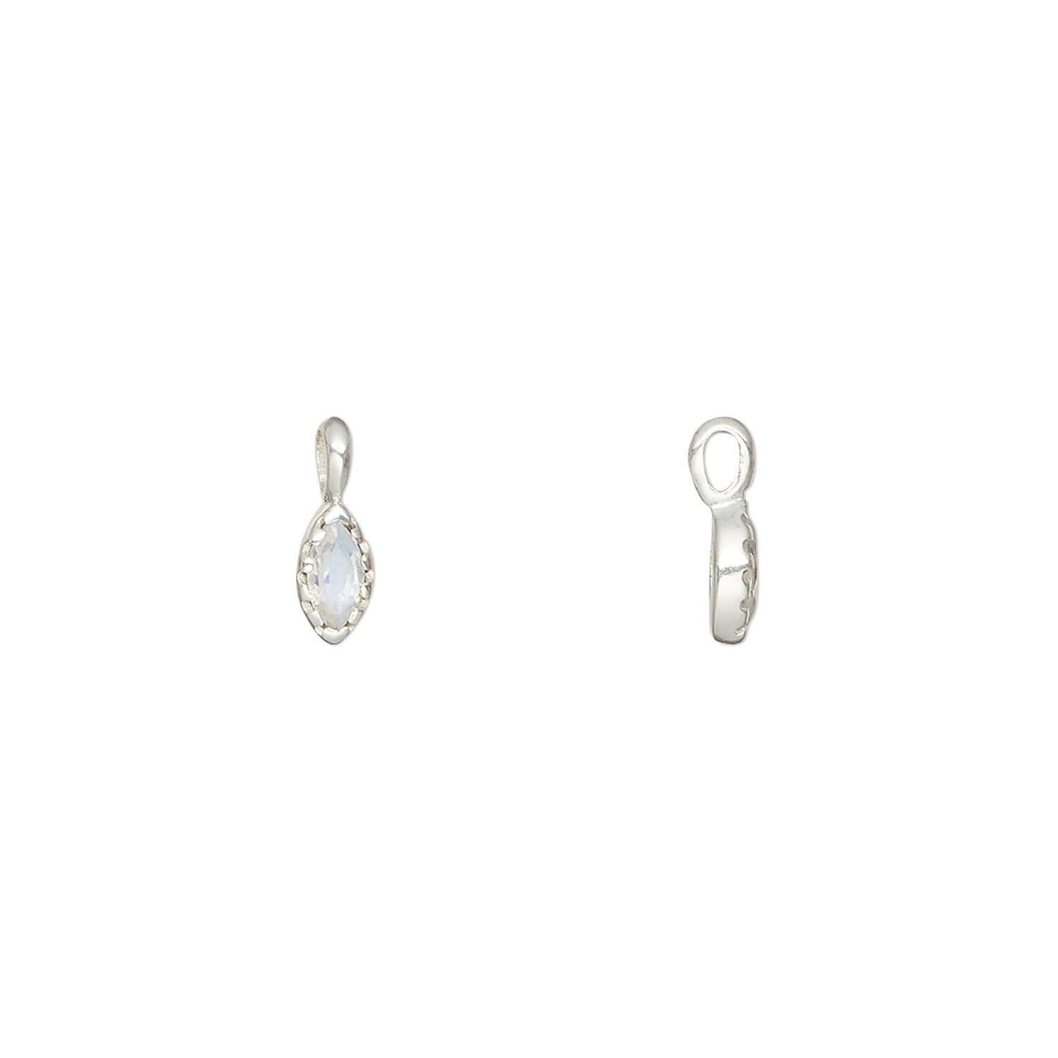 Pendant, rainbow moonstone (natural) and sterling silver, 6x3.5mm faceted marquise.