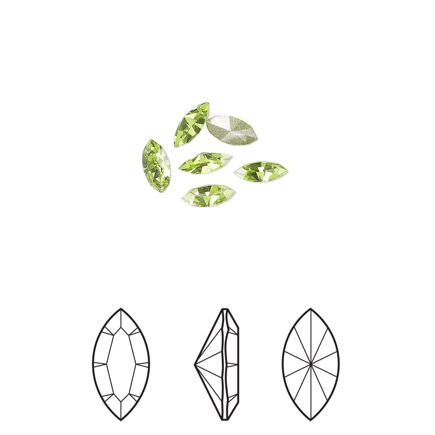 Fancy stone 6pk citrus green foil back, Crystal Passions® 5x2.5mm navette 4228
