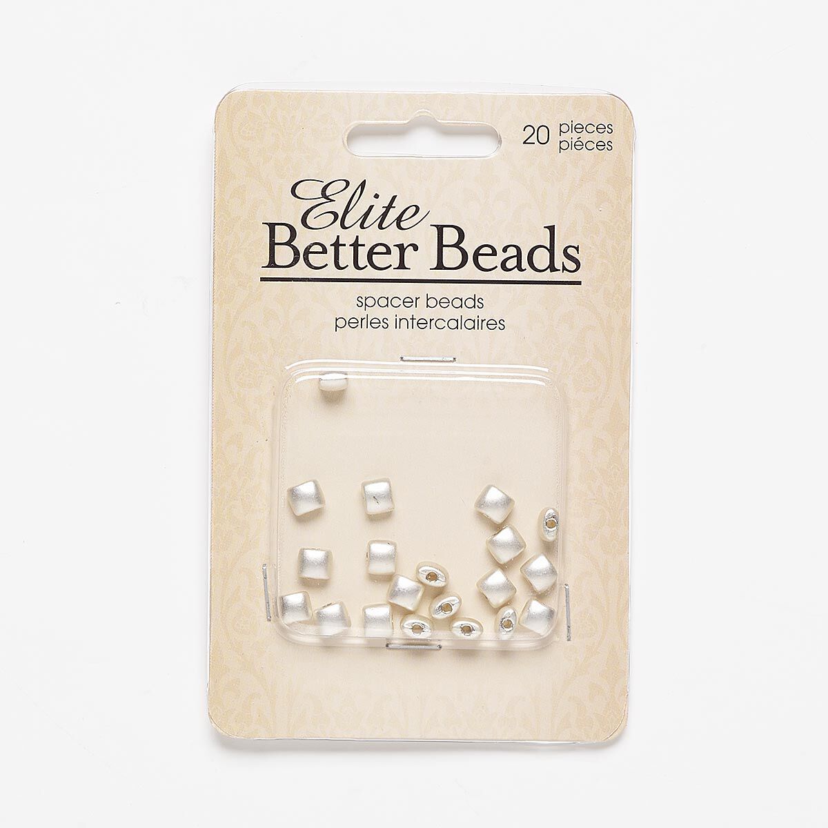 Bead, silver-finished "pewter" (zinc-based alloy), 6x5mm matte puffed rectangle. Sold per pkg of 20.