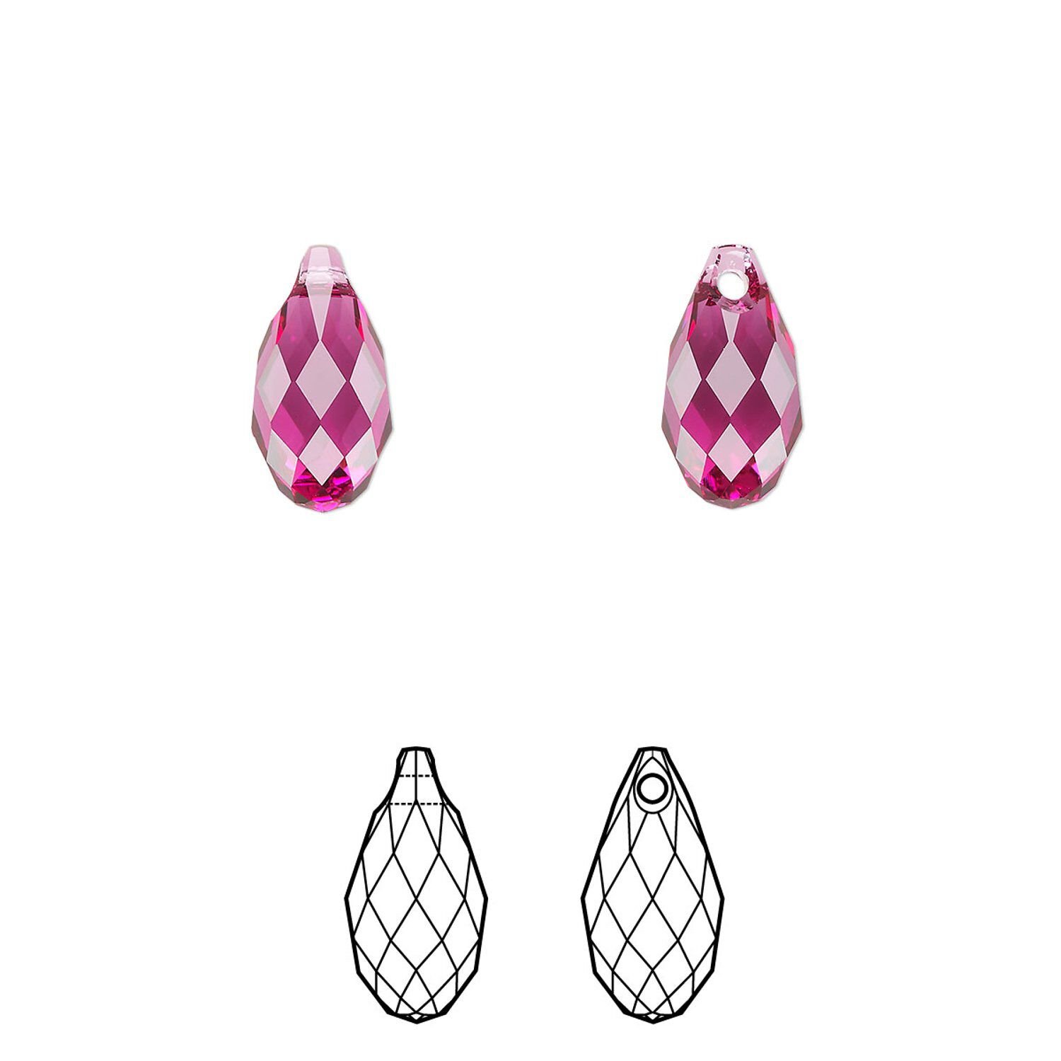 Briolette 2pk fuchsia, Crystal Passions® 11x5.5mm pendant drop 6010