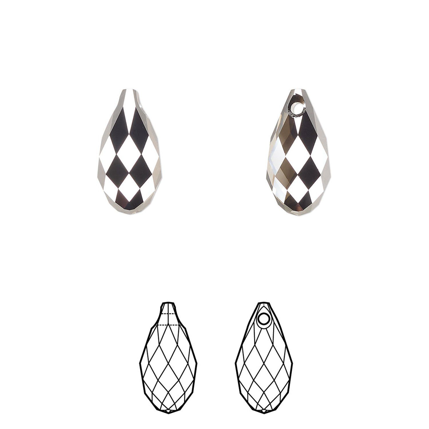 Briolette 144pk crystal silver night, Swarovski® 13x6.5mm pendant drop 6010