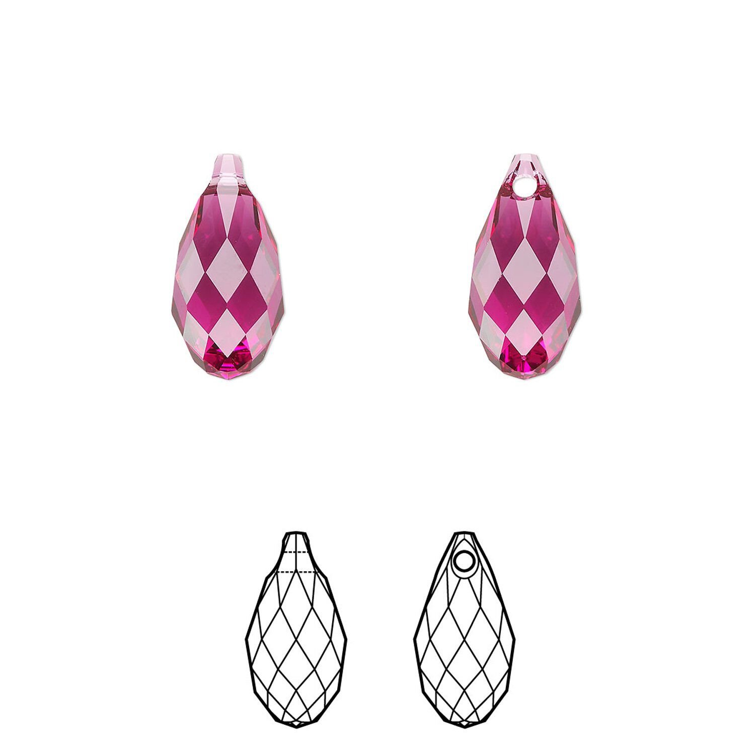 Briolette 2pk fuchsia, Crystal Passions® 13x6.5mm pendant drop 6010